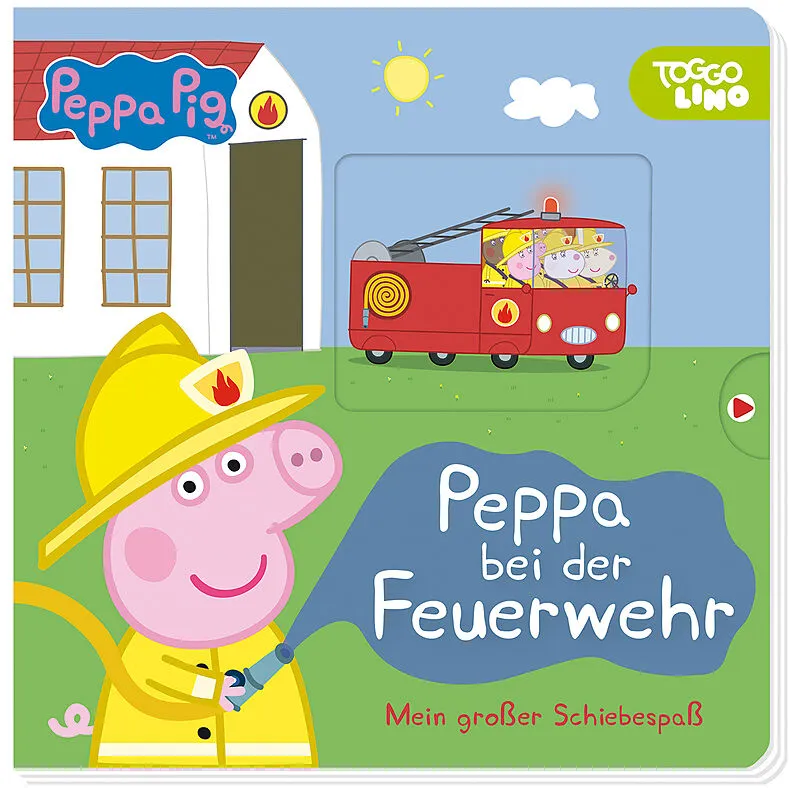 Tatütata! Peppa und Schorsch sind heute zu Besuch auf der Feuerwache und dürfen im Feuerwehrauto mitfahren. Ziehe an den Schiebern und hilf Peppa und den anderen, einzusteigen, die Leiter hochzuklettern und mit dem Schlauch Wasser zu spritzen. Auf zum Einsatz!...