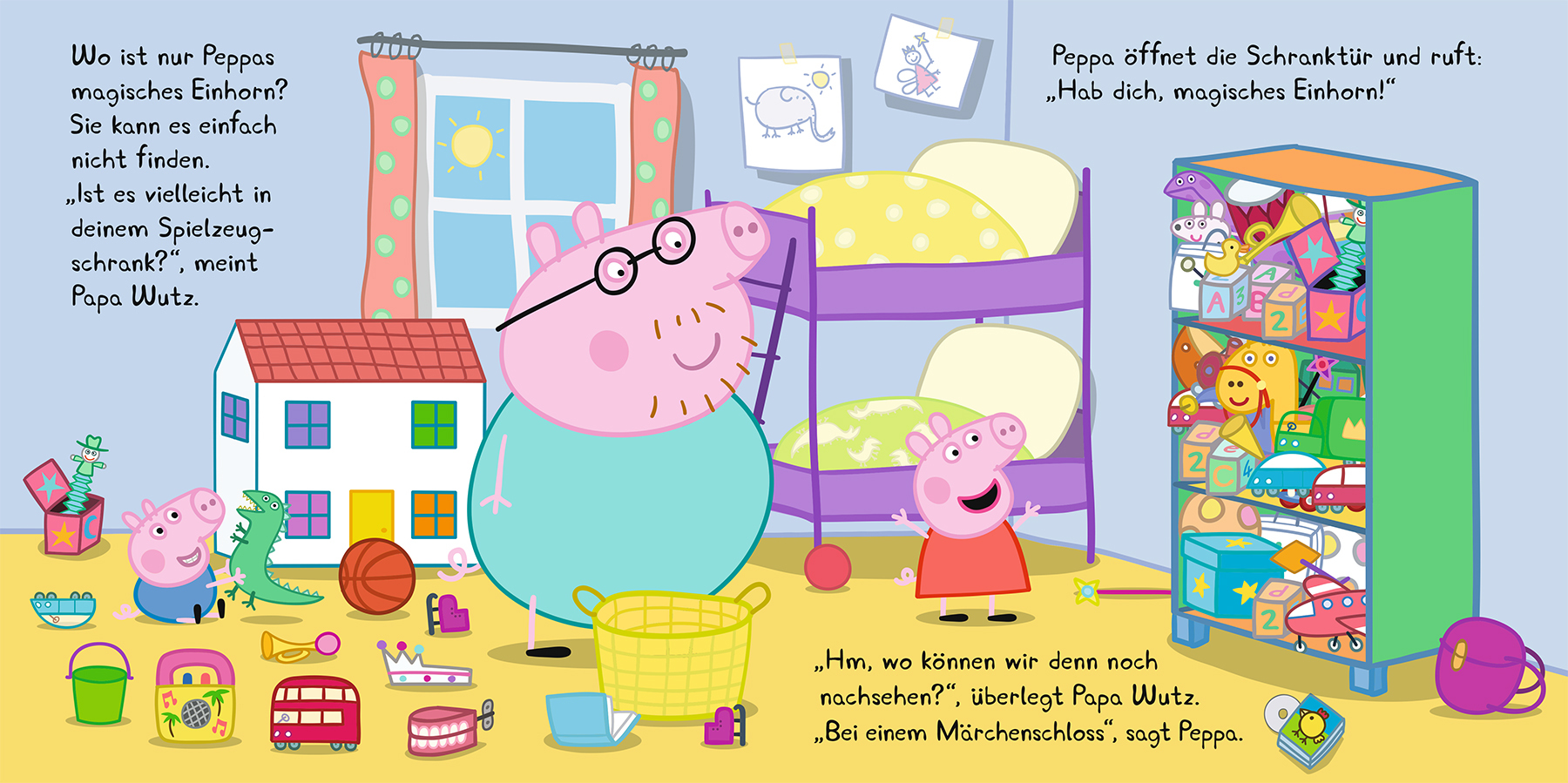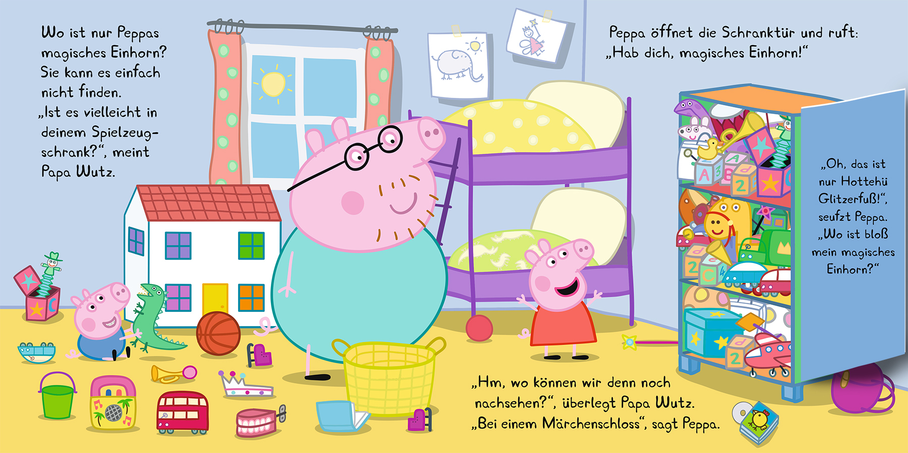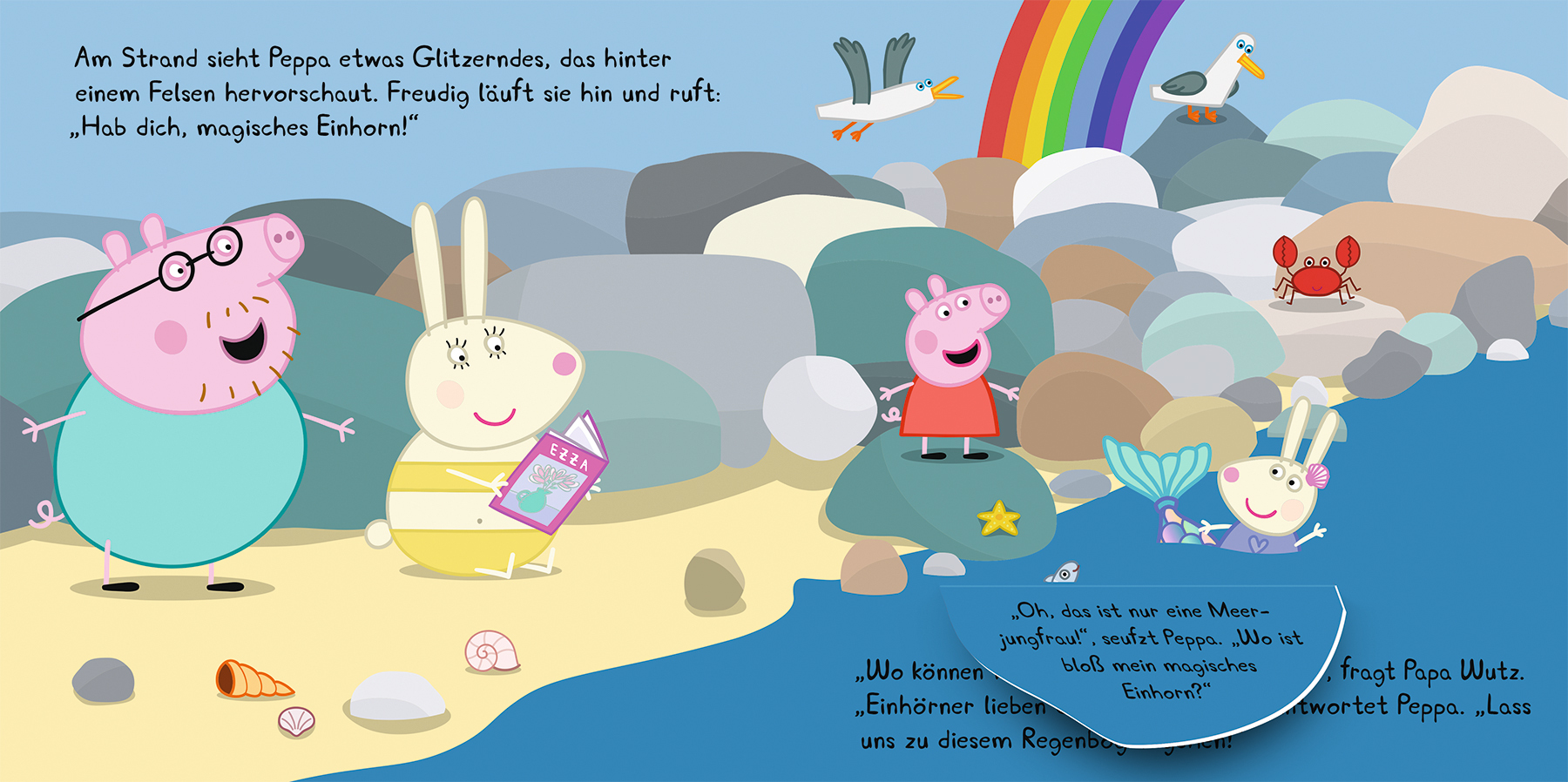 Peppa will mit ihrem magischen Einhorn spielen, aber sie kann es nirgends finden. Ist es beim Märchenschloss, am Strand oder vielleicht am Ende des Regenbogens? Mach dich mit Peppa auf die Suche! Schau hinter die Klappen und finde heraus, wo sich das Einhorn v...