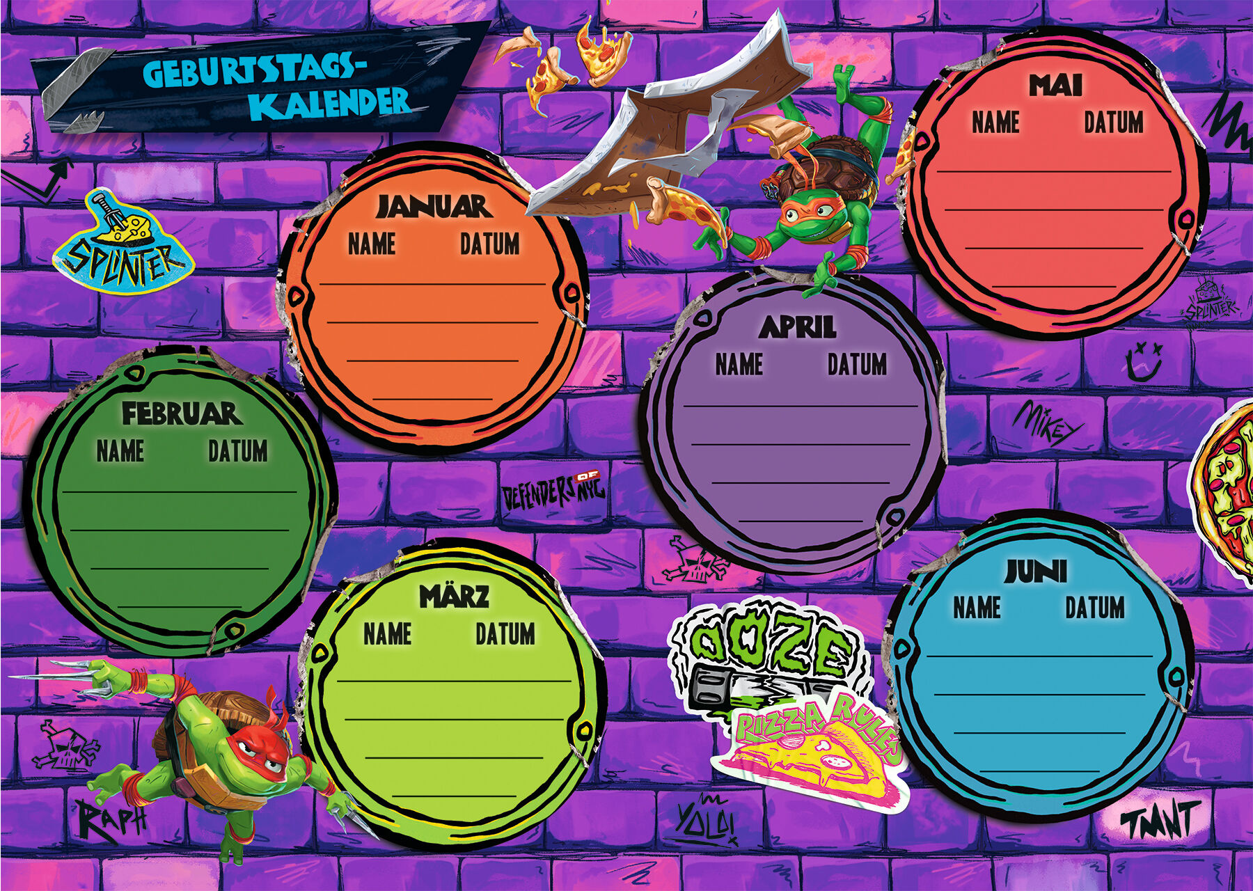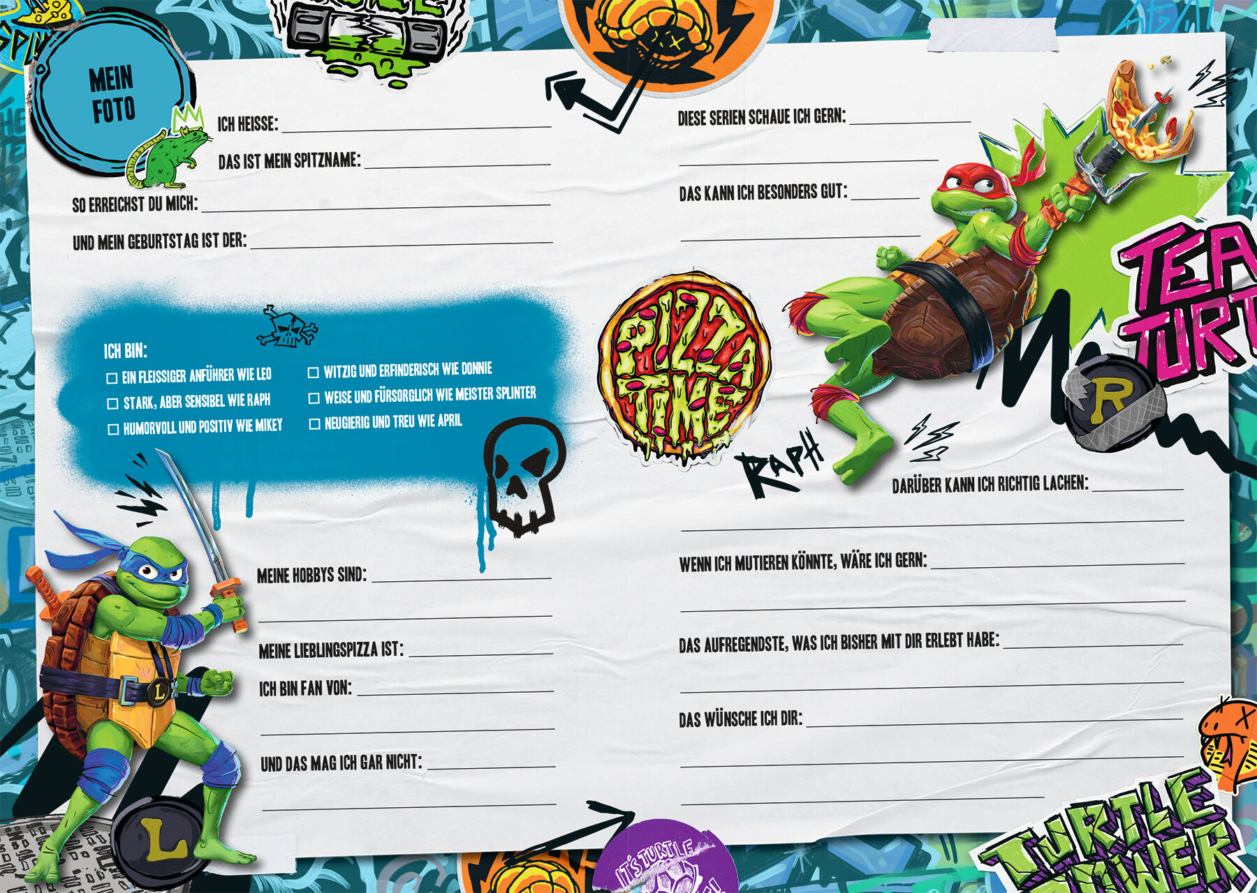 Dieses Freundebuch ist genau das Richtige für echte Turtles-Fans. Deine Freunde haben jede Menge Platz, sich einzutragen und dir einiges über sich zu verraten. Auf der Fotoseite kannst du eure coolsten gemeinsamen Bilder einkleben und mit dem praktischen Monat...