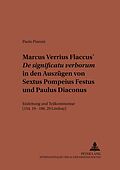Der unter Kaiser Tiberius gestorbene Gelehrte Marcus Verrius Flaccus verfaßte neben anderen Werken die Schrift De significatu verborum. In diesem umfangreichen enzyklopädischen Lexikon werden seltene, meist altertümliche Wörter von einem grammatikalischen, ant...