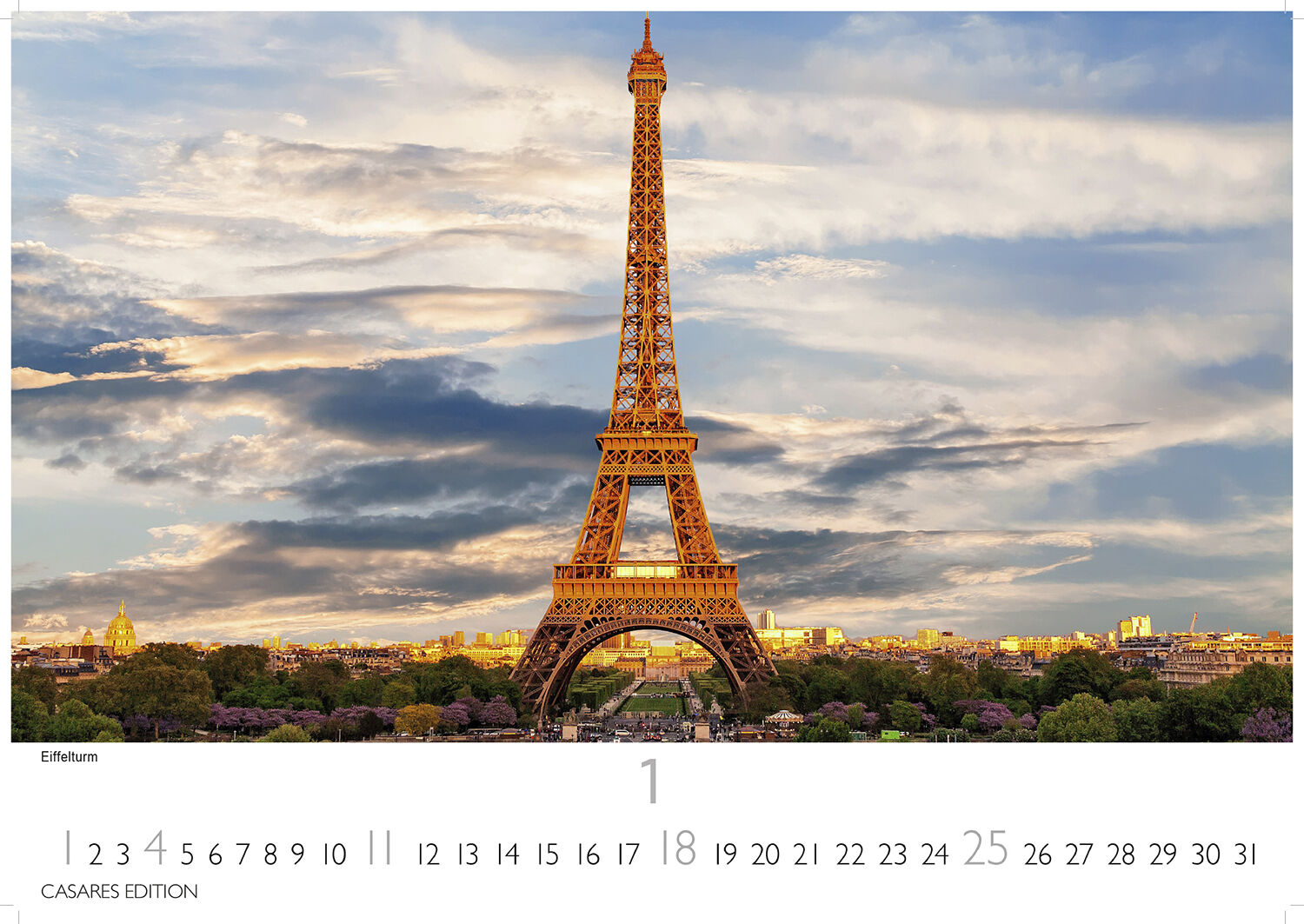 Der Kalender Paris 2026 bringt die zeitlose Schönheit der französischen Hauptstadt direkt an Ihre Wand. Mit sorgfältig ausgewählten, beeindruckenden Aufnahmen von ikonischen Wahrzeichen wie dem Eiffelturm, der Seine und charmanten Plätzen, bietet dieser Kalend...