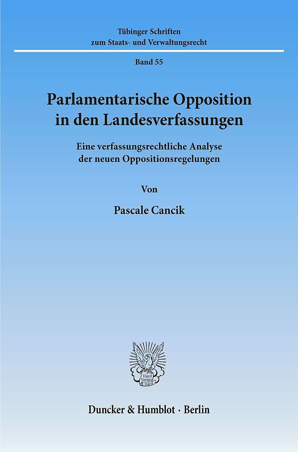 Gegenstand der Untersuchung sind die "Oppositions-Regelungen" in den neuen und den reformierten Landesverfassungen. Der ersten Regelung Hamburgs (1973) folgten ab 1990 Definitionen und Funktionsbeschreibungen von parlamentarischer Opposition sowie Aufgaben- un...