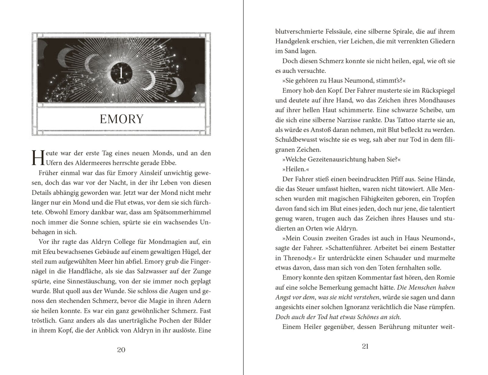 Ein Roman wie eine Flutwelle Bildgewaltige Dark-Academia-Fantasy um eine junge Mondmagierin, ein mächtiges Geheimnis und eine unwiderstehliche Liebe Emory war bisher höchstens eine mittelmäßige Heilerin, und dass sie einen Platz am renommierten Aldryn College...