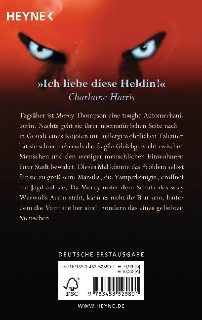 Mercy Thompson ist stolze Besitzerin einer kleinen Autowerkstatt. Und sie ist eine Walkerin sie kann sich in einen Kojoten verwandeln. Doch Mercys Welt ist dunkel und gefährlich. Für den Tod eines Vampirs, an dem sie nicht ganz unschuldig ist, sinnt die Vampir...Mercy Thompson ist stolze Besitzerin einer kleinen Autowerkstatt. Und sie ist eine Walkerin sie kann sich in einen Kojoten verwandeln. Doch Mercys Welt ist dunkel und gefährlich. Für den Tod eines Vampirs, an dem sie nicht ganz unschuldig ist, sinnt die Vampirkönigin Marsilia auf Rache. Da bleibt Mercy kaum noch Zeit für ihre Beziehung mit dem umwerfenden Werwolf Adam