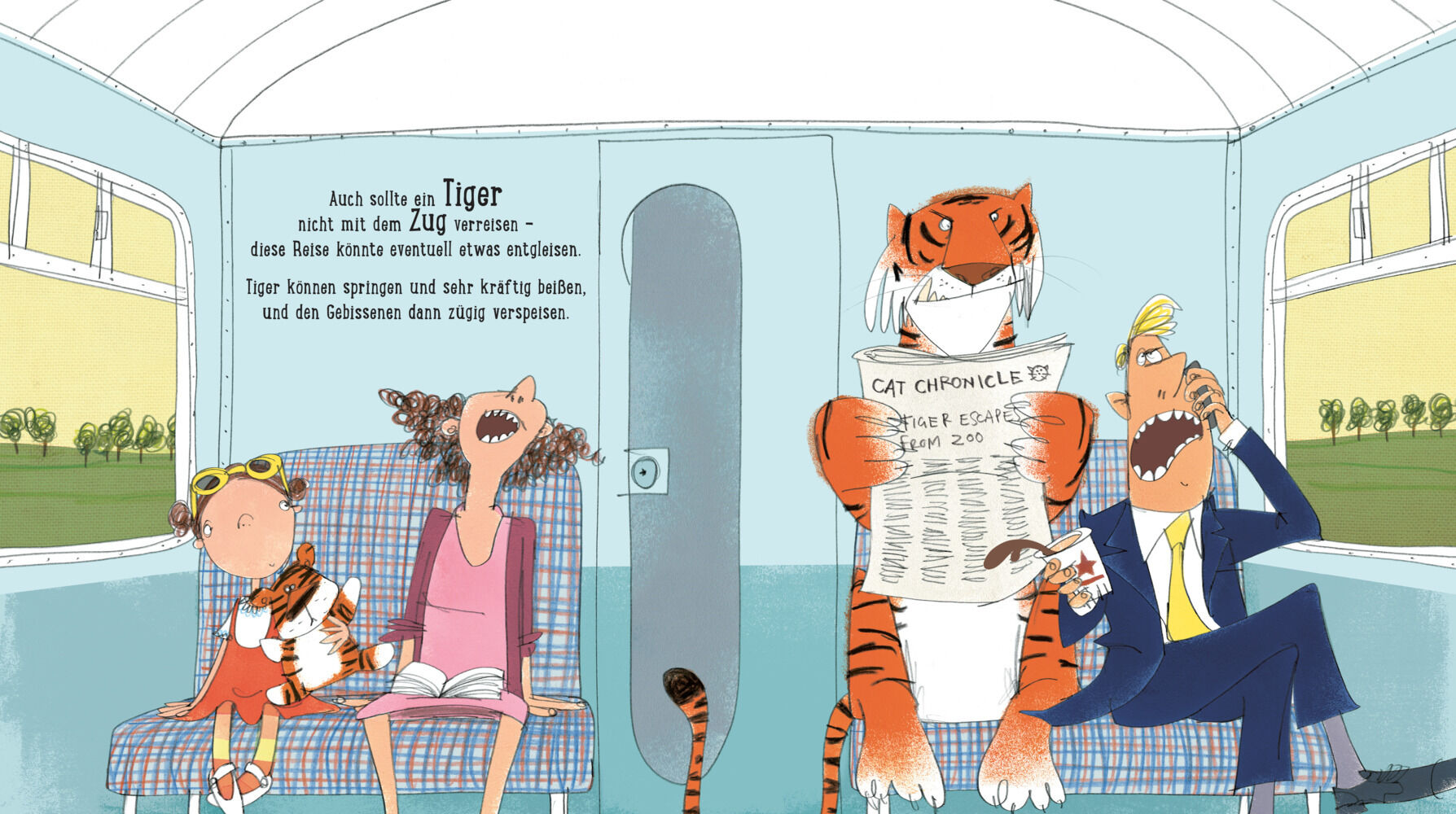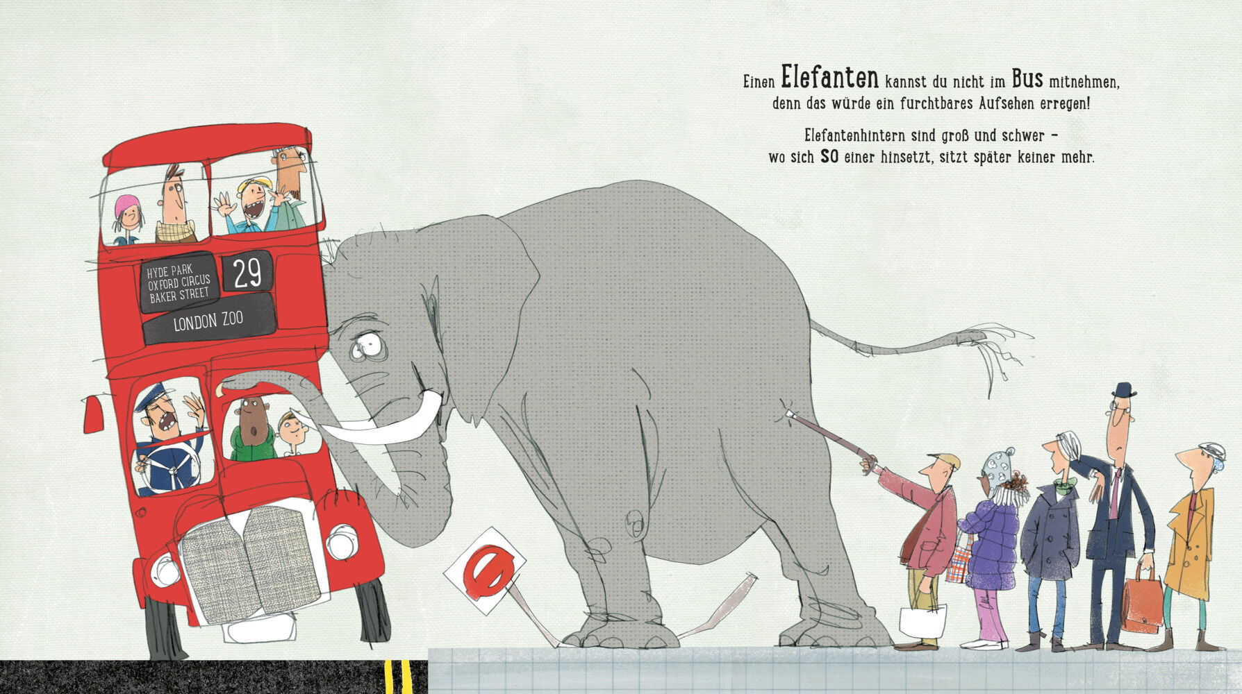 Manchmal sind die beklopptesten Ideen die lustigsten. So auch bei diesem turbulenten Tier-Abenteuer, in dem verschiedene Tiere versuchen, in völlig unpassenden Fahrzeu-gen zu reisen: Der Elefant will in den Bus hinein, der Tiger ist mit dem Zug unterwegs und ...