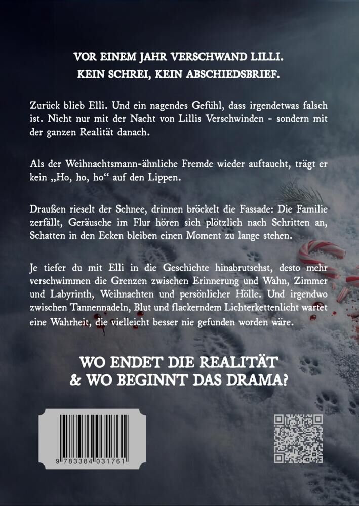 Vor einem Jahr versank Elli's Welt zu Weihnachten in Dunkelheit, als ihre Schwester Lilli spurlos verschwand. Ein mysteriöses Buch, überreicht von einem Santa-ähnlichen Fremden, flüstert von Geheimnissen, die niemand zuvor zu ergründen wagte. Doch die Geschich...