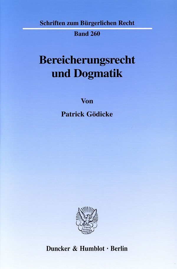 Inhaltsübersicht: Einführung - Erster Teil: Die Unüberschaubarkeit der bereicherungsrechtlichen Dogmatik: Die heutige Einschätzung der bereichungsrechtlichen Dogmatik - Das Spektrum der in der Kritik des Bereicherungsrechts verfolgten Ansatzpunkte - Der weitere Gang der Untersuchung - Zweiter Teil: Zur Bedeutung der Dogmatik in der zivilrechtlichen Rechtsfindung: Die heutige Einschätzung der Funktionen juristischer Dogmatik - Der Prozeß der Rechtsfindung im Zivilrecht - Das Wirksamwerden der Dogmatik in den einzelnen Stufen der Rechtsfindung - Dritter Teil: Ansätze zu einer methodischen Konsolidierung der bereicherungsrechtlichen Dogmatik: Bereicherungsrecht und zivilrechtliches Anspruchssystem - Die bereicherungsrechtliche Dogmatik zwischen systemorientierten und fallorientierten Ansätzen einer Konsolidierung - Zur Gewichtung systemorientierter und fallorientierter Methoden der Rechtsfindung in der Entwicklung der bereicherungsrechtlichen Dogmatik - Ausblick: Juristische Dogmatik und europäische Rechtskultur - Literaturverzeichnis - Personenregister - Sachregister