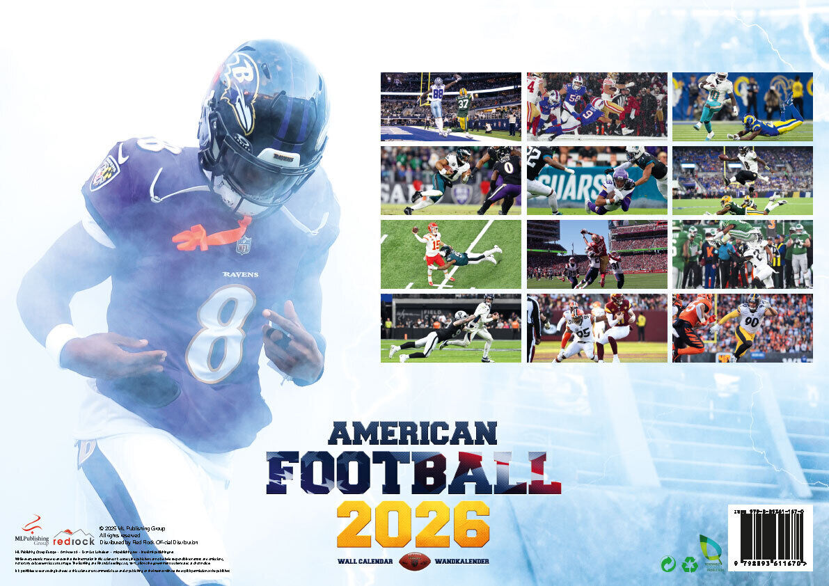Offizieller American Football Kalender mit den größten Stars und Teams der NFL (National Football League). Der Kalender enthält zudem alle gesetzlichen und religiösen Feiertage, Kalenderwochen, Zeitumstellungen, Mondphasen und alle wichtigen Football-Termine f...
