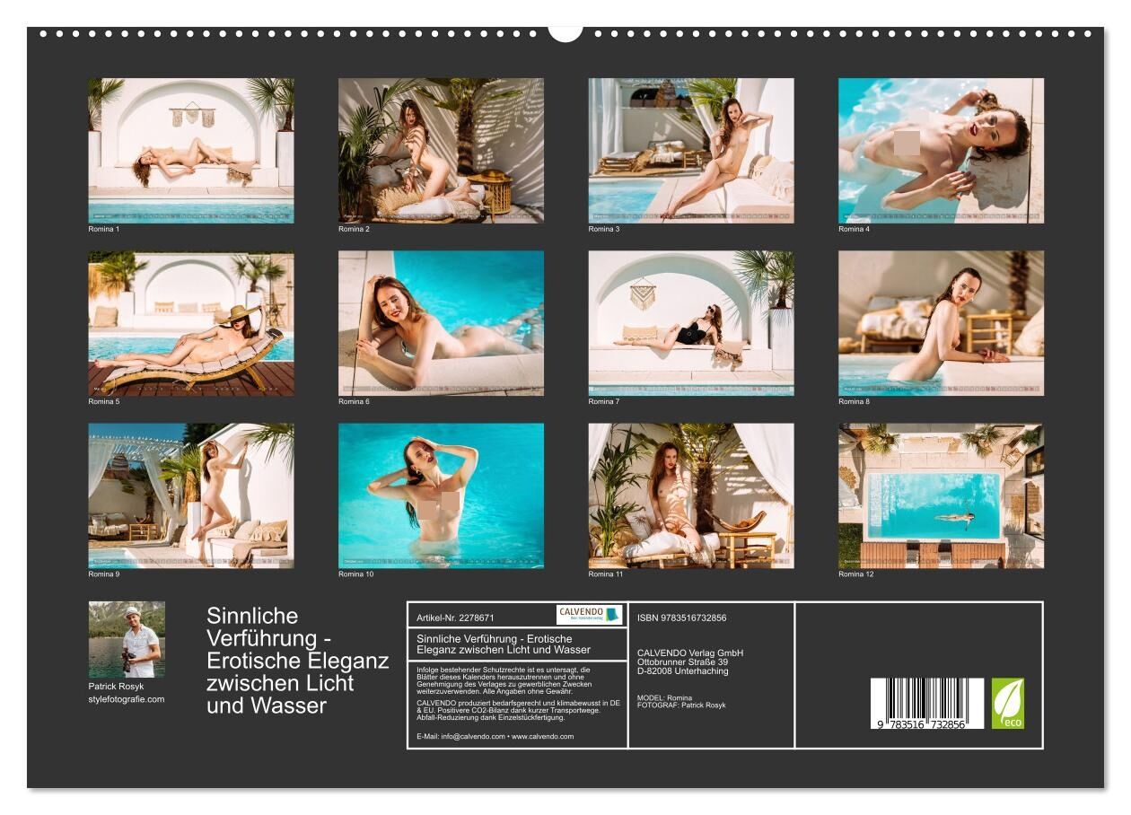 Sinnlichkeit in ihrer edelsten Form der Luxus-Erotikkalender mit Dana-Romina Verführe deine Sinne mit zwölf kunstvollen Momenten voller Anmut, Wärme und Sehnsucht. Dana-Romina zeigt sich in stilvoller Eleganz am Pool, umgeben von sommerlichem Boho-Flair und go...