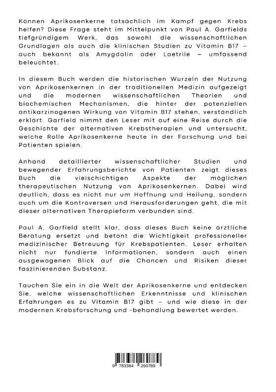 Können Aprikosenkerne tatsächlich im Kampf gegen Krebs helfen? Diese Frage steht im Mittelpunkt von Paul A. Garfields tiefgründigem Werk, das sowohl die wissenschaftlichen Grundlagen als auch die klinischen Studien zu Vitamin B17 auch bekannt als Amygdalin ode...