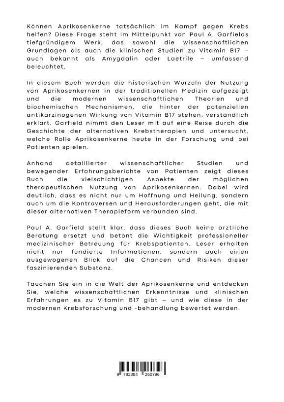Können Aprikosenkerne tatsächlich im Kampf gegen Krebs helfen? Diese Frage steht im Mittelpunkt von Paul A. Garfields tiefgründigem Werk, das sowohl die wissenschaftlichen Grundlagen als auch die klinischen Studien zu Vitamin B17 auch bekannt als Amygdalin ode...