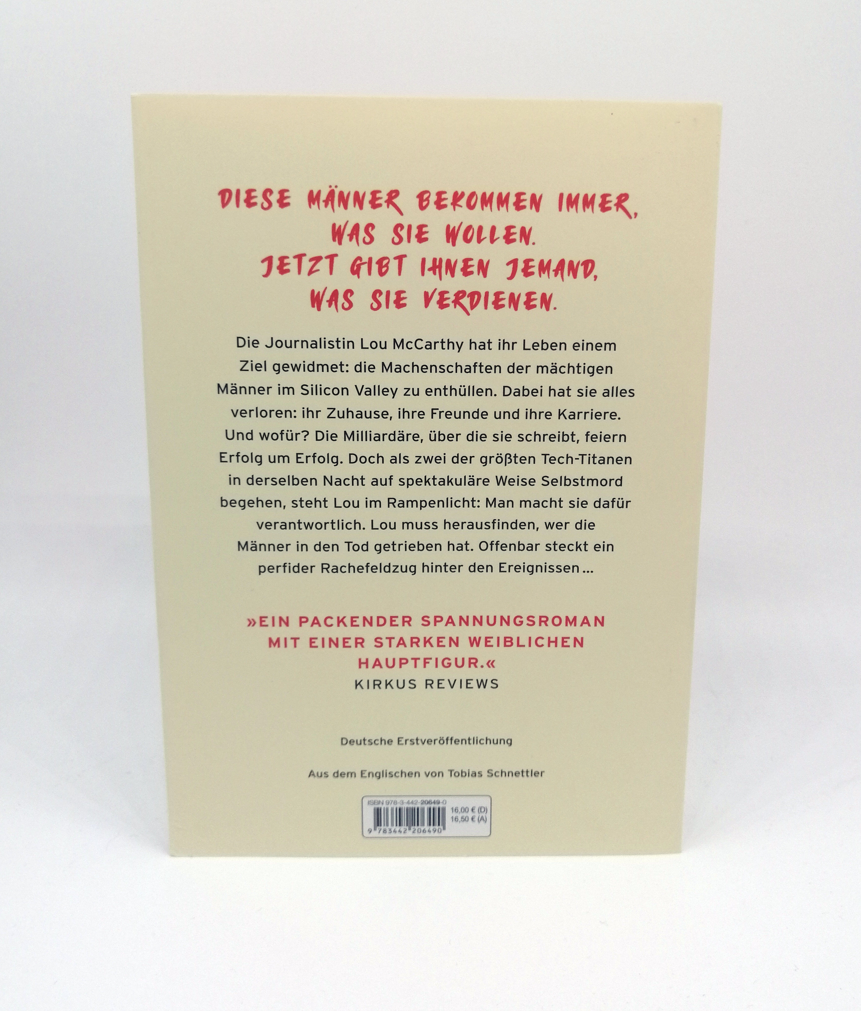 Diese Männer bekommen immer, was sie wollen. Jetzt gibt ihnen jemand, was sie verdienen. Die Journalistin Lou McCarthy hat ihr Leben einem Ziel gewidmet: die dunklen Machenschaften der mächtigen Männer im Silicon Valley zu enthüllen. Durch ihren Kreuzzug hat s...