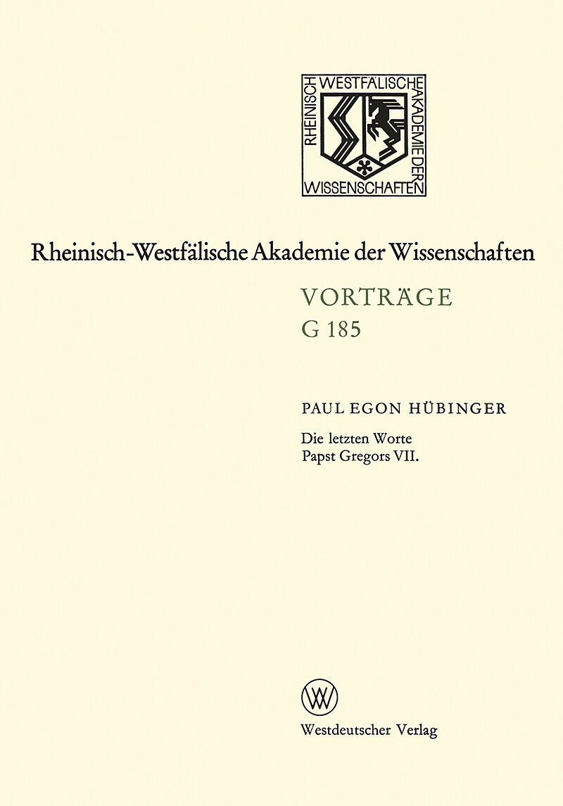 Hiermit wird der Vortrag, den ich am 20. Januar 1971 in der Klasse für Geisteswissenschaften der Rheinisch-Westfälischen Akademie der Wissen schaften gehalten habe, im Druck vorgelegt. Die ursprüngliche Fassung ist beträchtlich erweitert und der Gang der Unter...