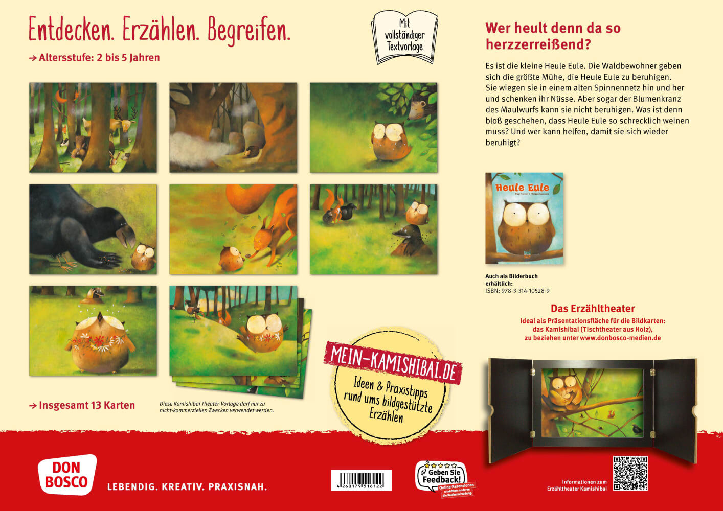 Die kleine Eule heult und heult. Die Waldbewohner tun alles, um das Eulenkind zu trösten. Ein weiterer Bilderbuchklassiker für das Kamishibai. Warum heult die kleine Eule? Eine Bildergeschichte für das Kamishibai Erzähltheater Die Waldbewohner sind in Aufruhr:...