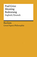 Herbert Paul Grice' bahnbrechender Aufsatz von 1957 bildet einen der wichtigsten Bezugspunkte für Debatten darüber, was Bedeutung genau ist. Grice bietet eine Semantik bzw. Bedeutungslehre an, die von Intentionen ausgeht, also die Reaktion des Adressaten einer...