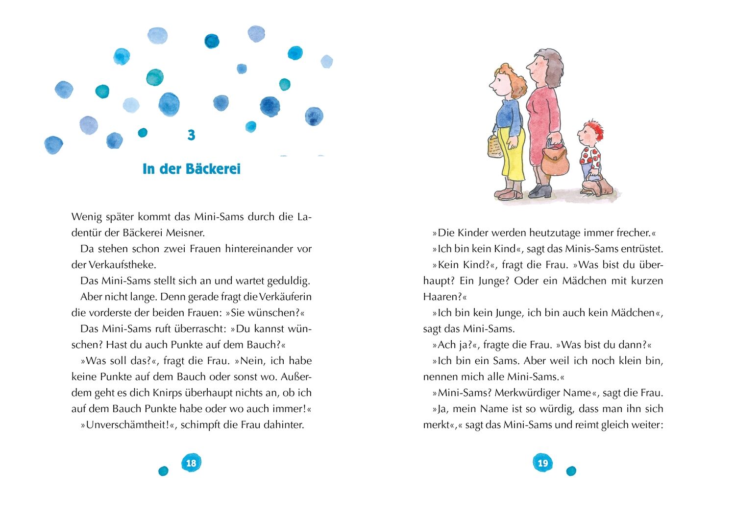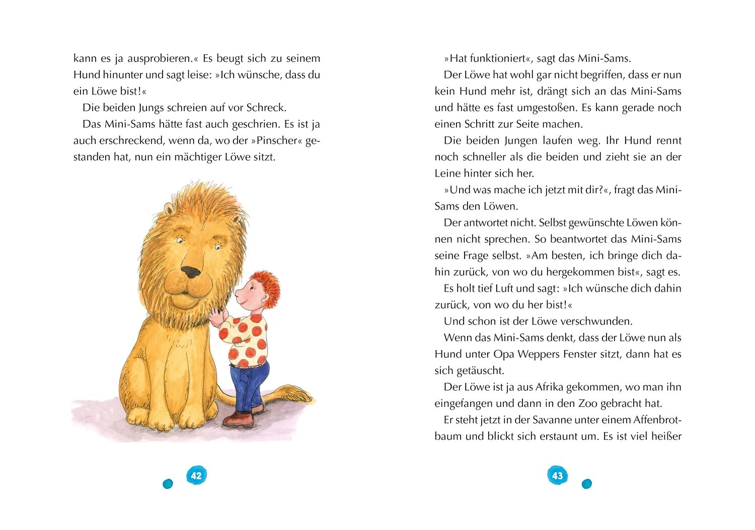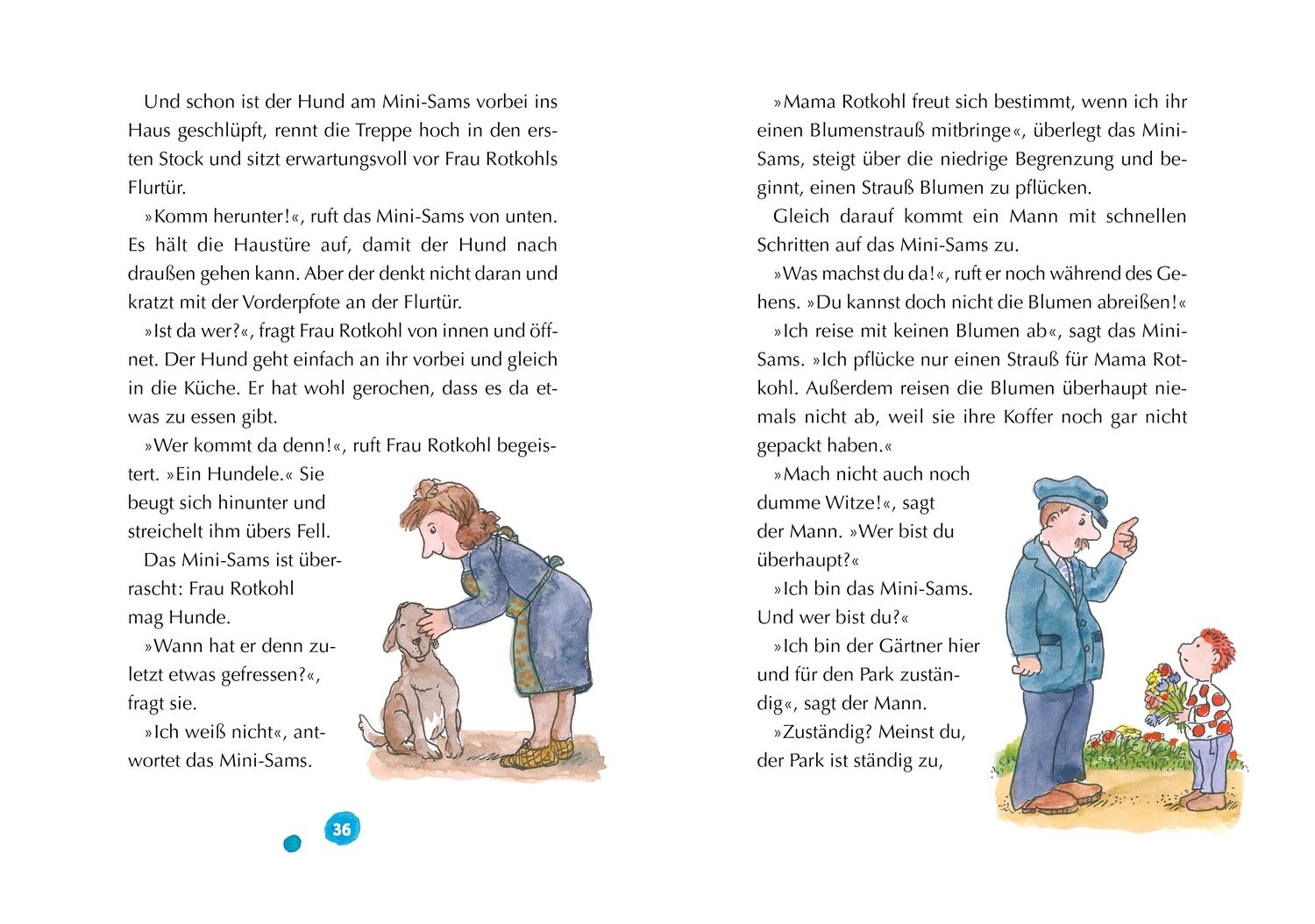 Dass das Mini-Sams einen Faible für Frau Rotkohl hat und umgekehrt, wissen wir seit "Das Sams und die große Weihnachtssuche". Denn da was das kleine Baby-Sams zum ersten Mal in der Menschenwelt. Und so besucht das kleine Sams auch in diesem Abenteuer Frau Rotkohl, weil es sie so arg vermisst, aber niemals nicht würde das Mini-Sams ohne Wunschpunkte in die Menschwelt reisen. Zum Glück. Und so wünscht sich das Mini-Sams bei der ersten Gelegenheit einen Löwen herbei, Frau Rotkohl lässt es schweben und einen unfreundlichen Matrosen wünscht es schnurstracks über Bord. Da ist der Ärger natürlich vorprogrammiert und jede Menge Spaß. Und natürlich sind auch das Sams, Herr Taschenbier, Herr Mon und viele andere Figuren aus der Sams-Welt bei diesem bunten Treiben dabei. Ergänzt werden die Geschichten mit Rätseln und tollen interaktiven Elementen.