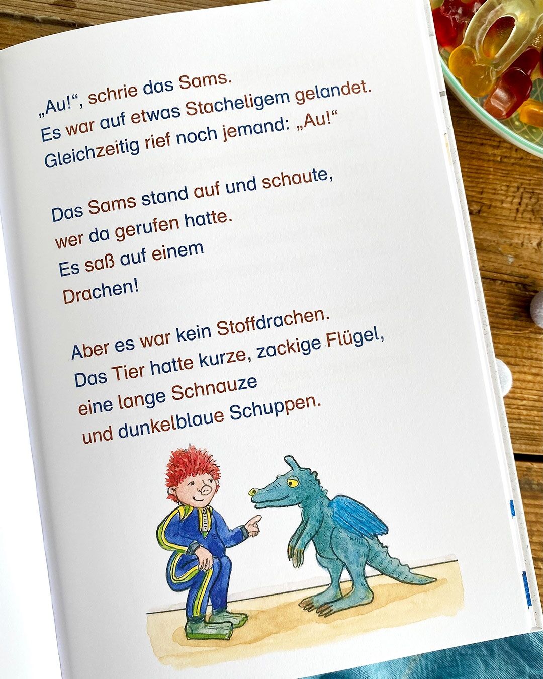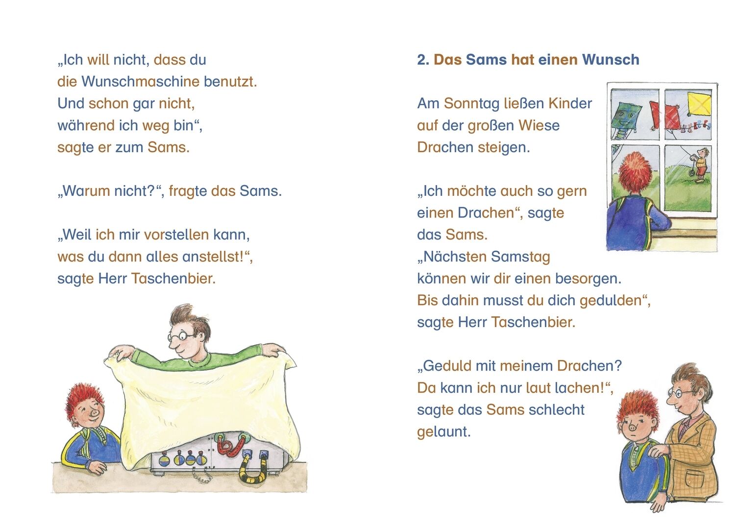 Lesen lernen mit dem Sams Ein neues Erstleseabenteuer mit Paul Maars frechem Sams: Als Papa Taschenbier auf der Arbeit ist, wünscht sich das Sams von der Wunschmaschine heimlich einen blauen Drachen. Den will es auf der Wiese vor dem Haus steigen lassen, wie ...