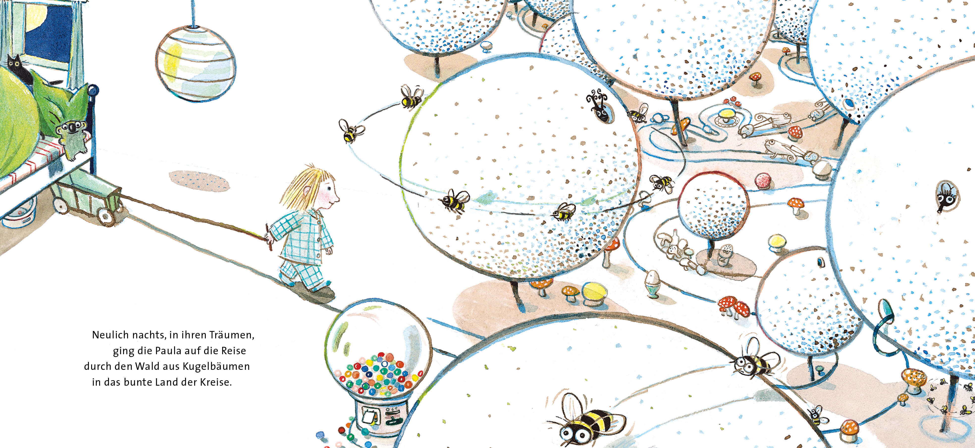 Die kleine Paula geht auf Traumreise durch wundersame Welten, in denen strenge Gesetze herrschen: So gerät sie ins bunte Land der Kreise, wo sie von der Kugelpolizei ergriffen und der kugelrunden Landschaft angepasst wird. Es gelingt ihr zwar zu fliehen, doch ...