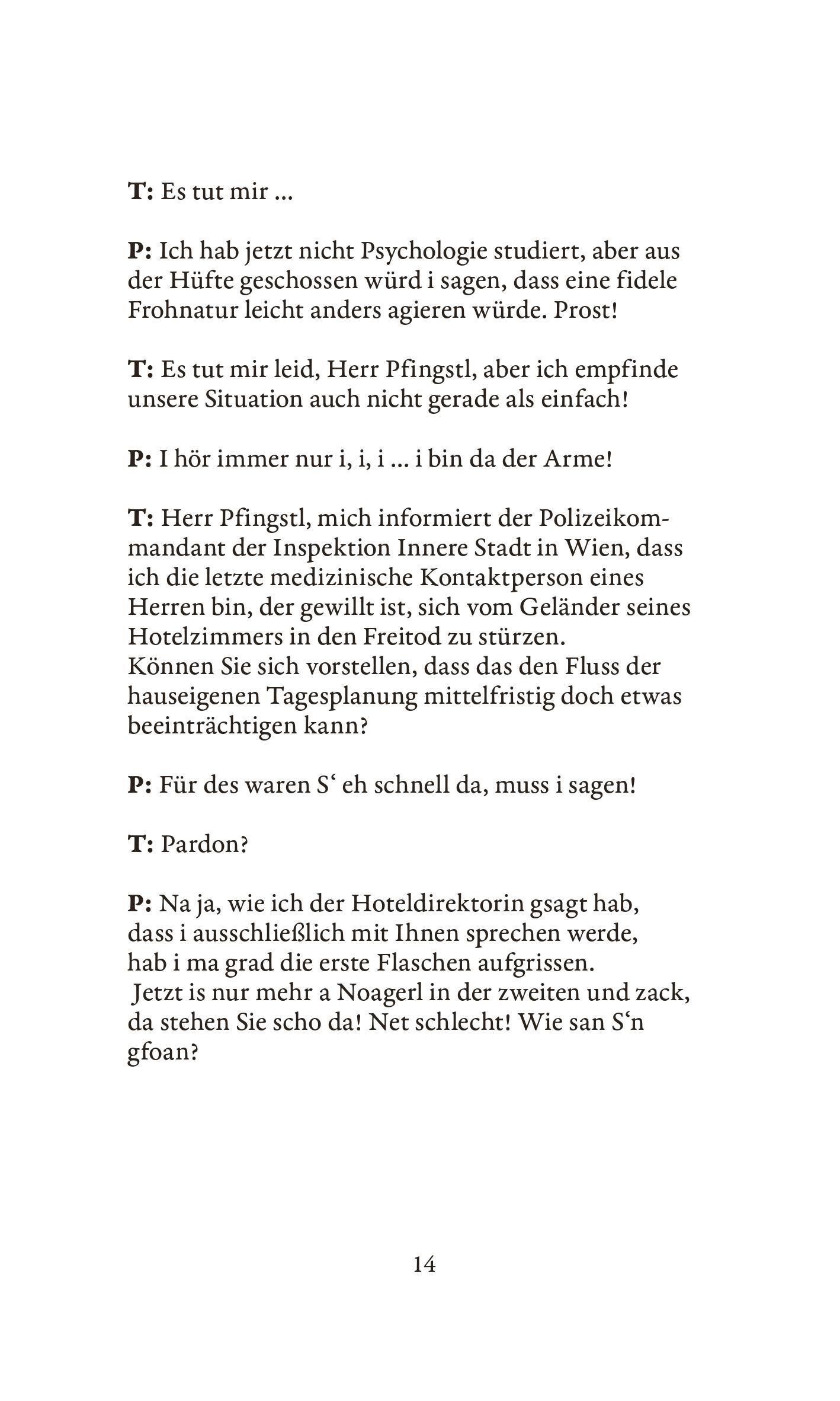 Es fliegt, es fliegt, es fliegt, es fliegt ... hoffentlich nicht Herr Pfingstl! Der lebensmüde Prolo will sich vom Balkonsims seiner Hotelzimmersuite hinunterstürzen. Der König der Möwen" kann schließlich von seiner Therapeutin überzeugt werden, dass es besse...