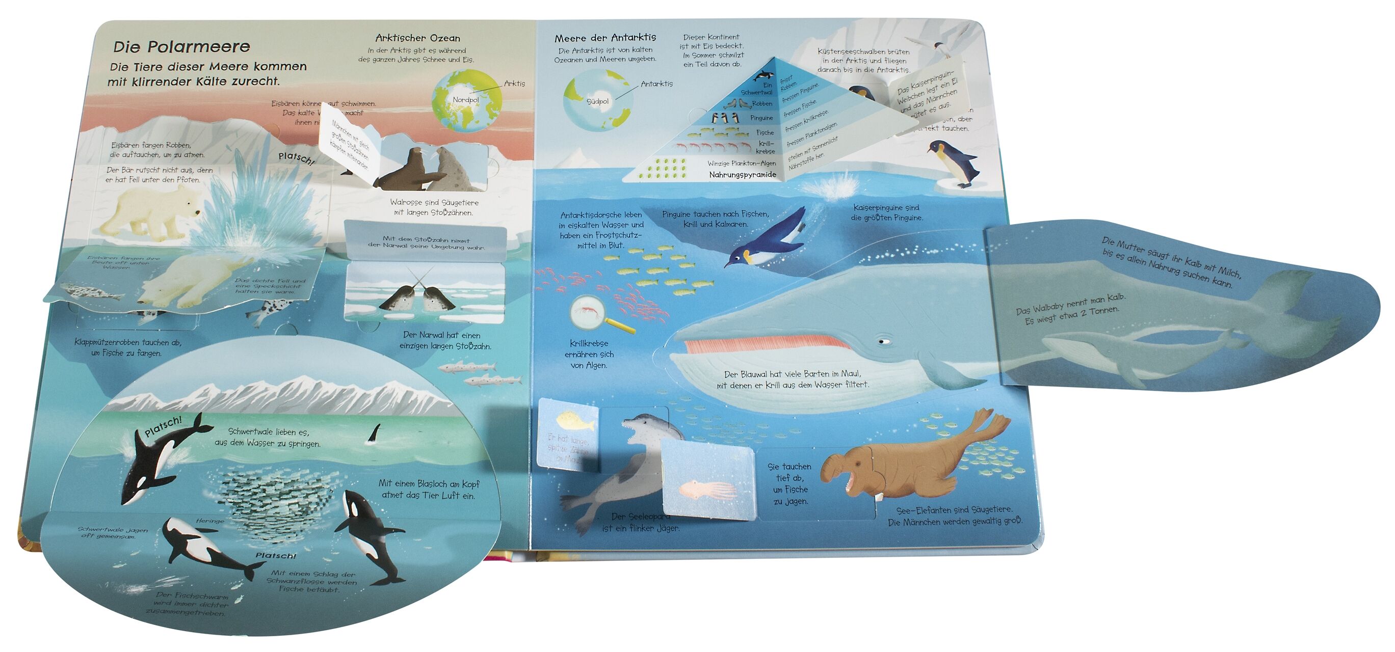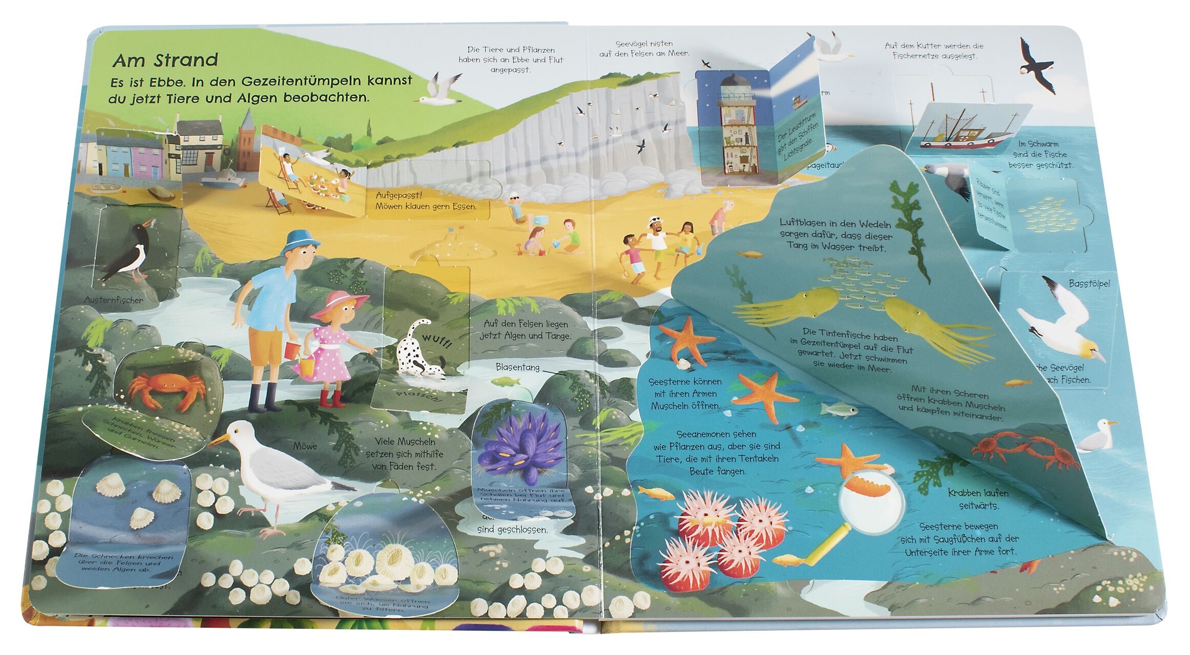Was gibt es im Meer zu sehen? Das Kinderbuch ab 3 Jahren mit 55 spannenden Klappen zeigt Kindern den Lebensraum Meer mit seinen Tieren und Pflanzen. Es nimmt sie mit auf eine besondere Erkundungstour vom Korallenriff bis in die Tiefsee. Das wunderschöne Bilde...
