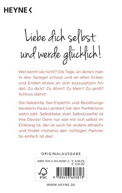 Wer kennt sie nicht? Die Tage, an denen man in den Spiegel schaut und an allen Ecken und Enden etwas an sich auszusetzen findet: Zu dick? Zu dünn? Zu klein? Zu groß? Schluss damit! Die bekannte Sex- Expertin und Beziehungsberaterin Paula Lambert hat den Perfek...