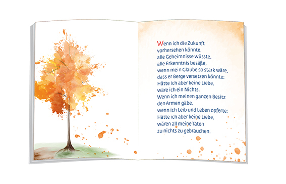Dieser unvergessliche Lobgesang der Bibel auf die Liebe ist nahezu zweitausend Jahre alt und liest sich doch, als wäre er für unsere Zeit geschrieben. Nach wie vor inspiriert und begleitet er Liebende überall auf der Welt: Die Liebe ist langmütig, die Liebe is...