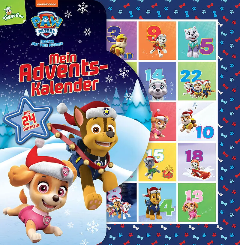 Weihnachten mit Chase, Marshall, Skye und ihren Freunden • Adventskalender mit den Helden von PAW Patrol • 24 Mini-Bücher aus stabiler Pappe mit Aufhängern (Format 40 x 40 mm, je 8 Seiten) in einer wiederverschließbaren Box • Auch als Baumschmu...