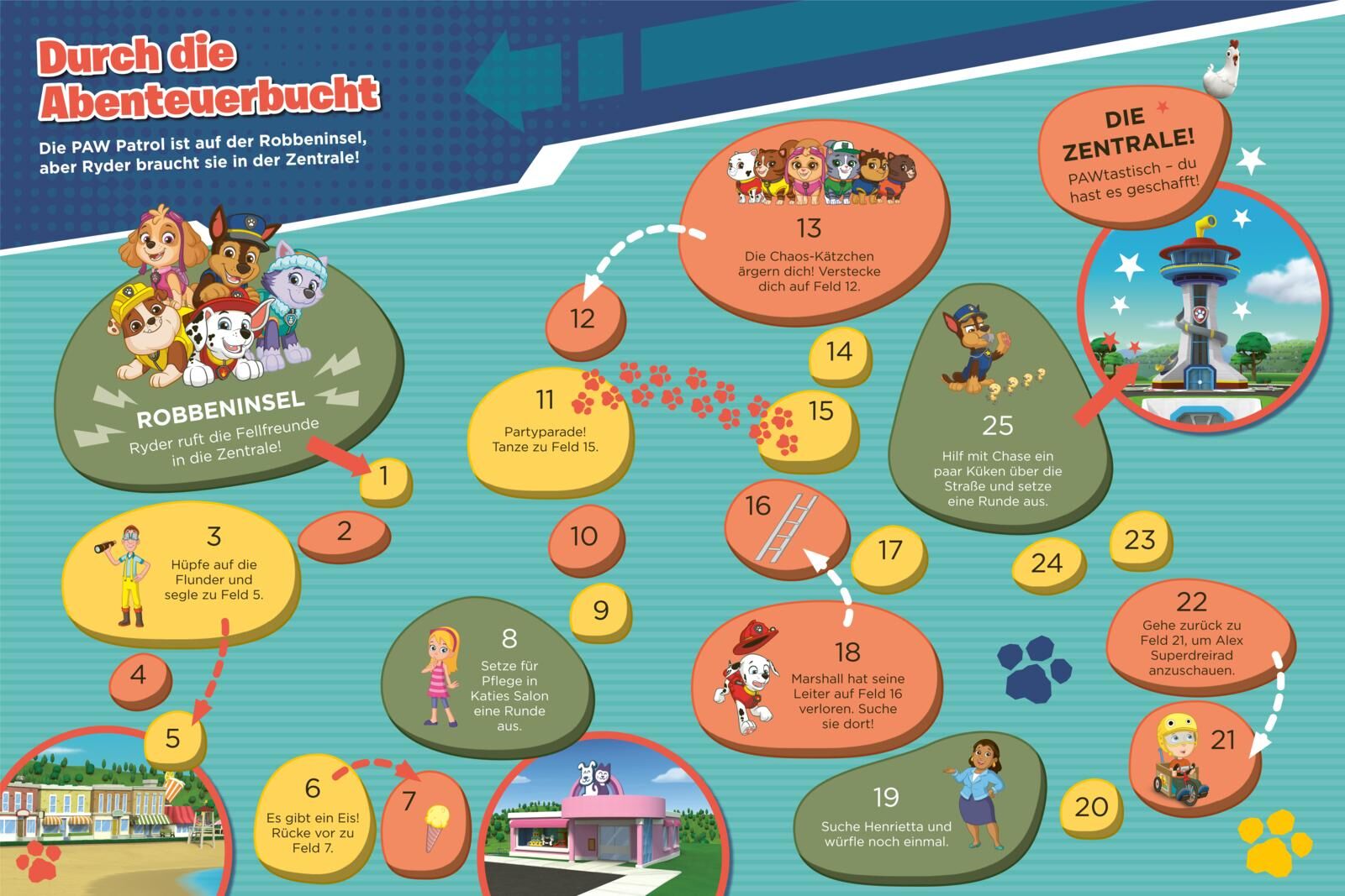 Brettspiele mit der PAW Patrol Spielspaß für zu Hause und unterwegs! Ob eine Entdeckungsreise durch die Abenteuerbucht, ein Ausflug auf Yumis Bauernhof oder eine Mission im Dinoland in diesem außergewöhnlichen Buch gibt es einzigartige Brettspiel-Vorlagen aus...