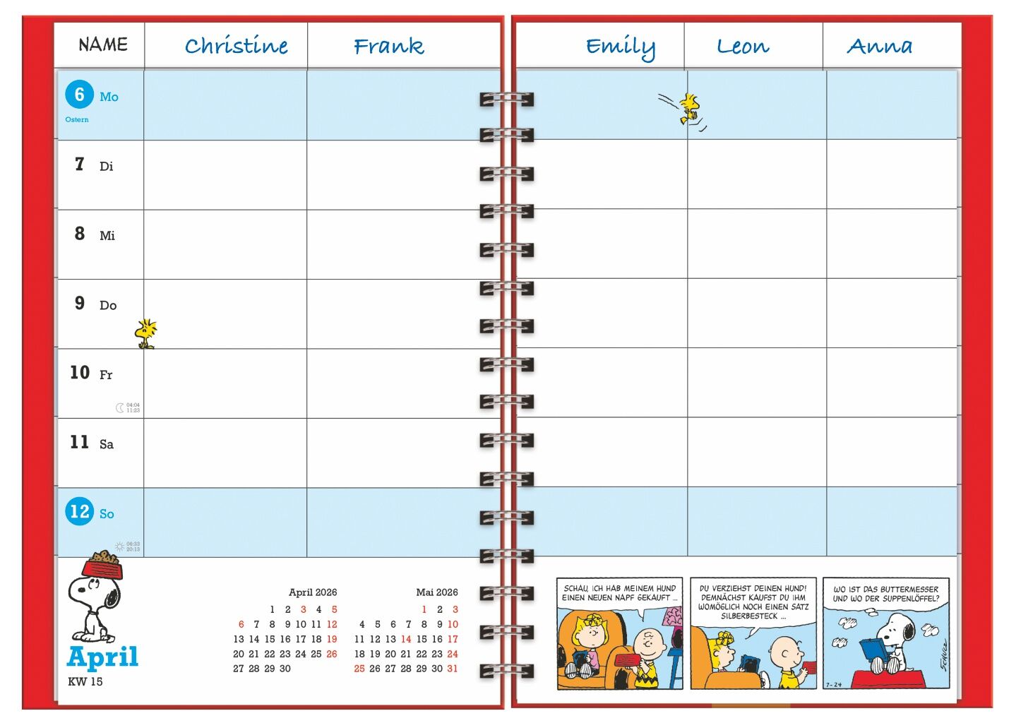 Immer alle Termine fest im Griff, mit dem neuen Peanuts A5-Terminkalender in Buchform 2026 - Die schönsten Weisheiten und Cartoons von Charlie Brown, Snoopy und ihren Freunden, auf 160 Seiten im platzsparenden 15,2 x 23,2-Hochformat mit Spiralbindung - Für a...