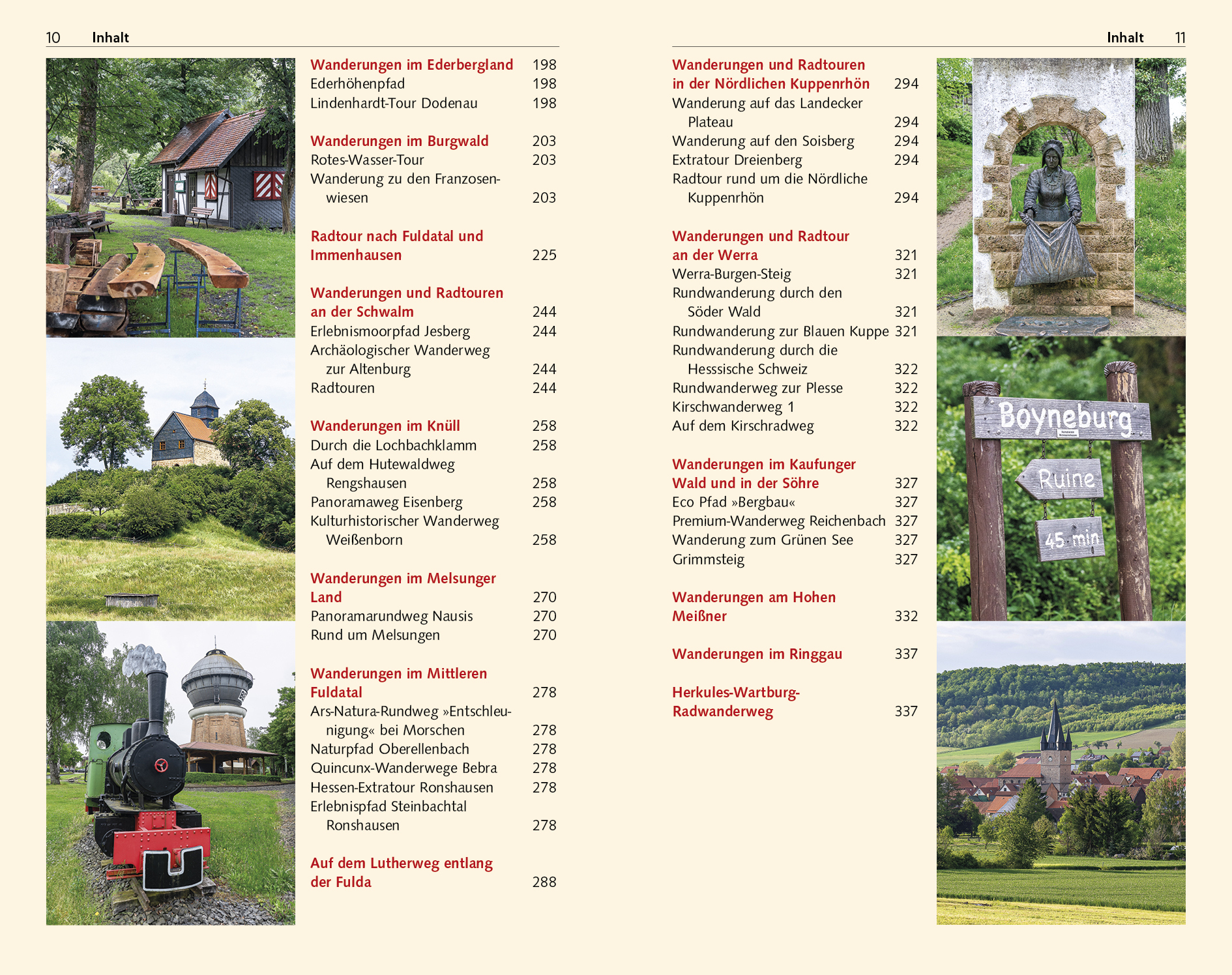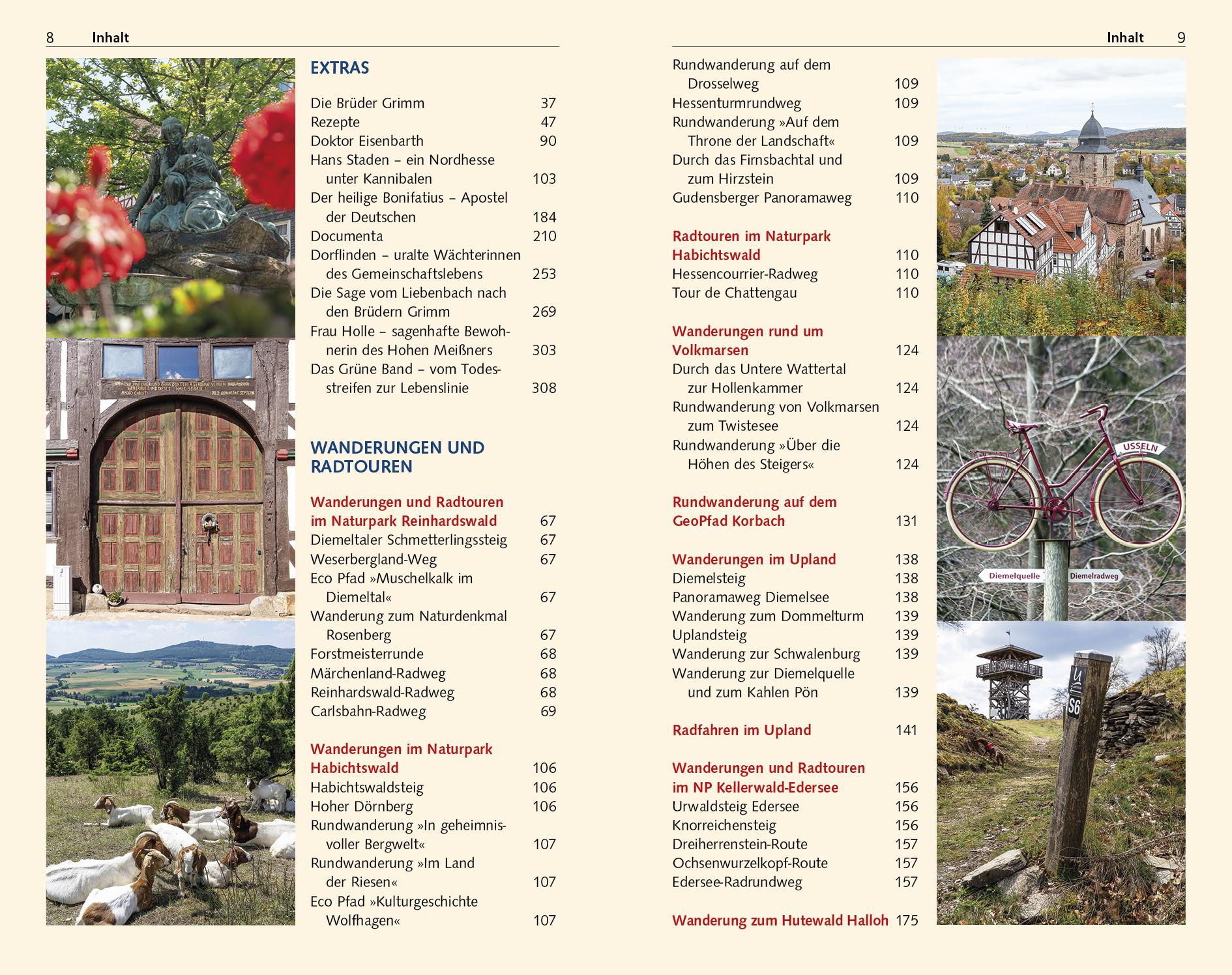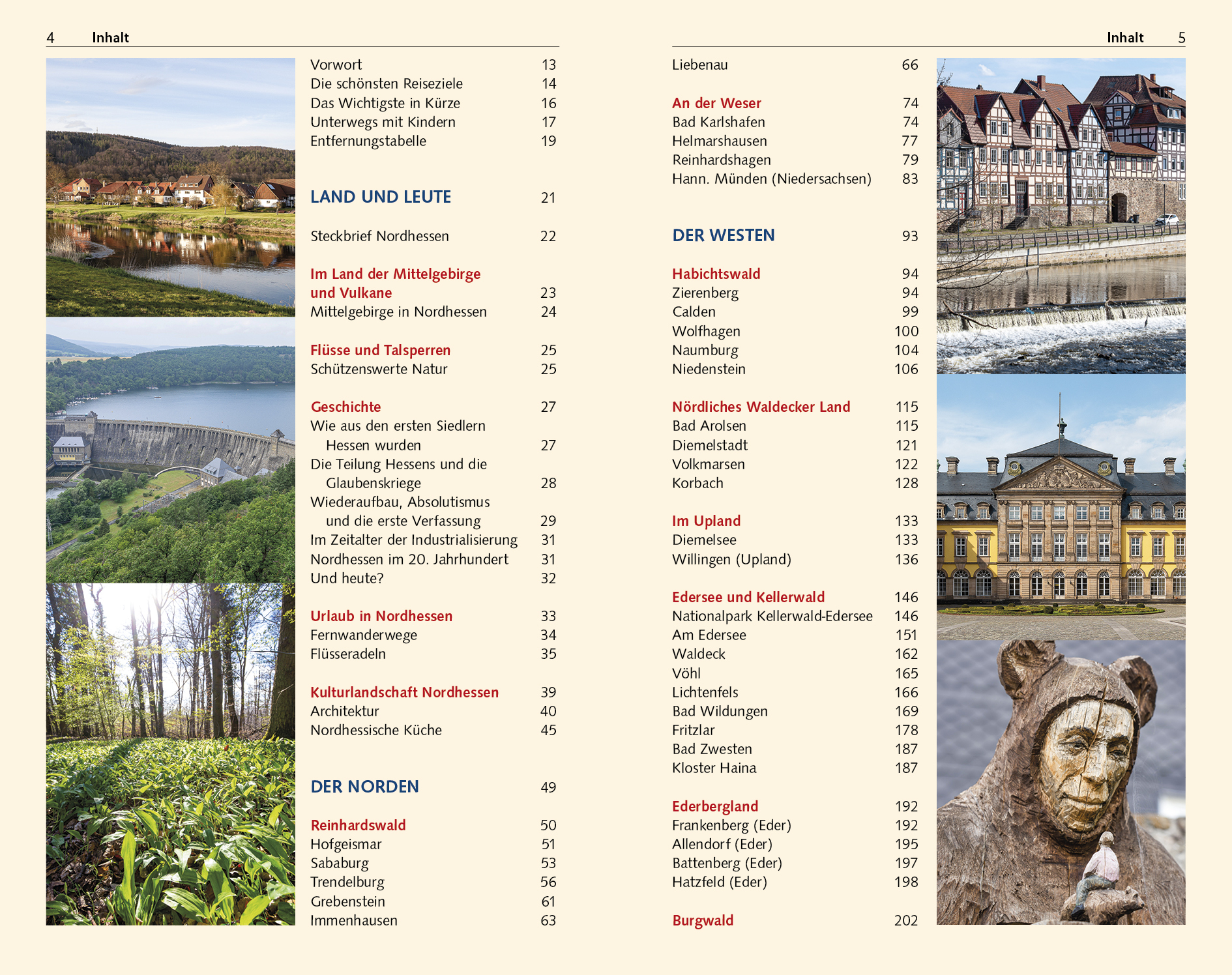 VON TENNENTOREN, KNAGGEN UND MANN-FIGUREN Nordhessische Fachwerkarchitektur » Seite 40 ZU BESUCH BEI DORNRÖSCHEN Die Sababurg » Seite 53 BAROCKES SCHMUCKKÄSTCHEN Bad Arolsen und sein Residenzschloss » Seite 115 WANDER- UND WASSERSPORTPARADIES Nationalpark Kellerwald-Edersee » Seite 146 APOSTEL DER DEUTSCHEN Der heilige Bonifatius in Fritzlar » Seite 184 DIE UNTERSCHÄTZTE METROPOLE Kassel » Seite 205 URALTE WÄCHTERINNEN DES GEMEINSCHAFTSLEBENS Dorflinden » Seite 253 FESTSPIELE IN ERHABENER KULISSE Bad Hersfeld » Seite 282 SAGENHAFTE BEWOHNERIN DES HOHEN MEISSNERS Frau Holle auf der Spur » Seite 303Leseprobe