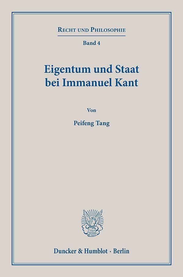 Peifeng Tang analysiert in dieser Untersuchung das Verhältnis von Eigentum und Staat in Kants Transzendentalphilosophie. Beleuchtet werden insbesondere das Verhältnis von Recht und Moral, die Rechtfertigung des Eigentums sowie Entstehung und Aufgaben des Staat...
