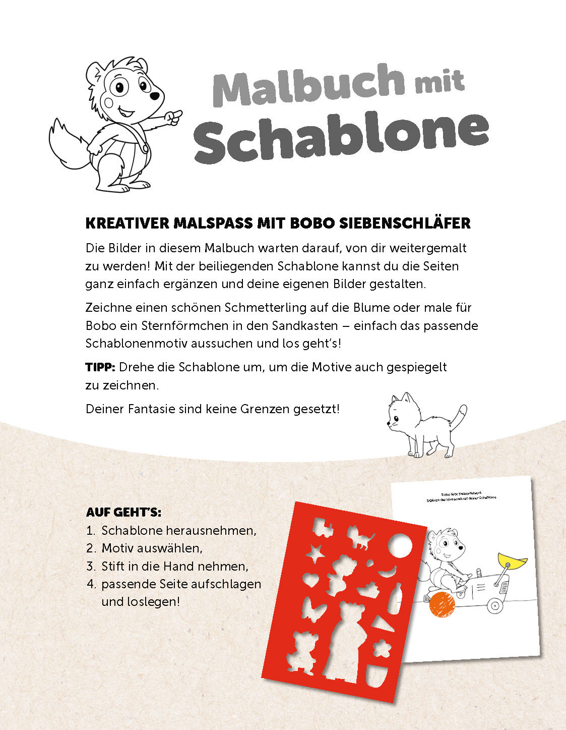 Mit Bobo Siebenschläfer ganz einfach tolle Bilder malen! • Malbuch mit hochwertiger Pappschablone zum Heraustrennen und mehr als 60 Motiven zum Ergänzen und Ausmalen • Mit zahlreichen Anregungen zum Weitermalen mit der Schablone • Stundenlange ...