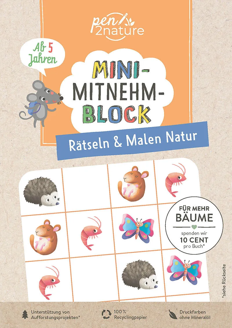Block im handlichen Mini-Format perfekt für unterwegs • Bunter Rätsel-Mix und schöne Ausmalbilder für kleine Naturfans ab 5 Jahren • Toll als Mitbringsel oder Give-away beim Kindergeburtstag geeignet • Trainiert Logisches Denken, Feinmotorik, K...
