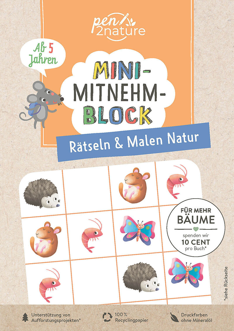 Block im handlichen Mini-Format perfekt für unterwegs • Bunter Rätsel-Mix und schöne Ausmalbilder für kleine Naturfans ab 5 Jahren • Toll als Mitbringsel oder Give-away beim Kindergeburtstag geeignet • Trainiert Logisches Denken, Feinmotorik, K...