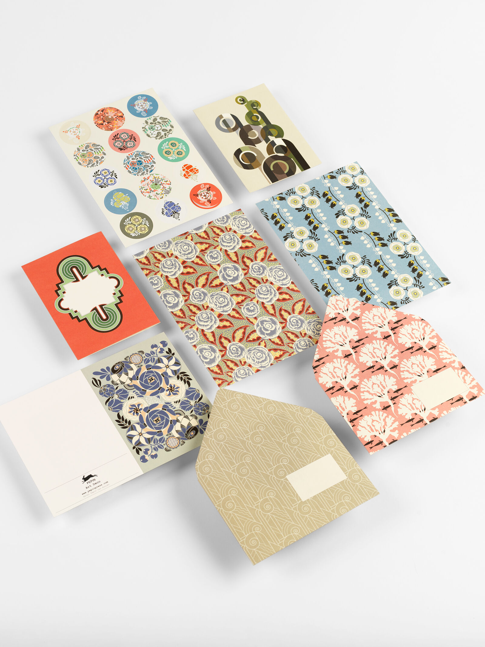Jede Schachtel PEPIN-Korrespondenzsets enthält 40 Blatt A5-Briefpapier (150 x 210 mm) mit 4 verschiedenen Designs (einseitig bedruckt, 10 x 4 Designs), 20 passende Umschläge (10 x 2 Designs), 8 Grußkarten (2 x 4 Designs) und 25 sortierte Aufkleber und Etikette...