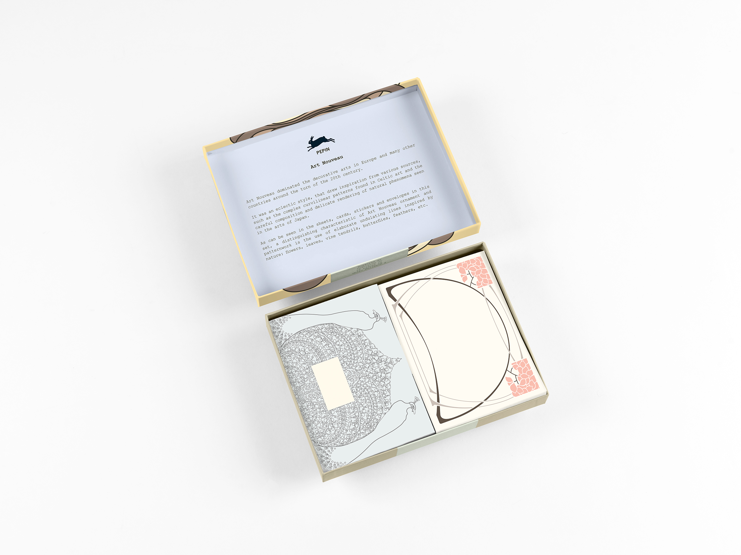 Jede Schachtel PEPIN-Korrespondenzsets enthält 40 Blatt A5-Briefpapier (150 x 210 mm) mit 4 verschiedenen Designs (einseitig bedruckt, 10 x 4 Designs), 20 passende Umschläge (10 x 2 Designs), 8 Grußkarten (2 x 4 Designs) und 25 sortierte Aufkleber und Etikette...