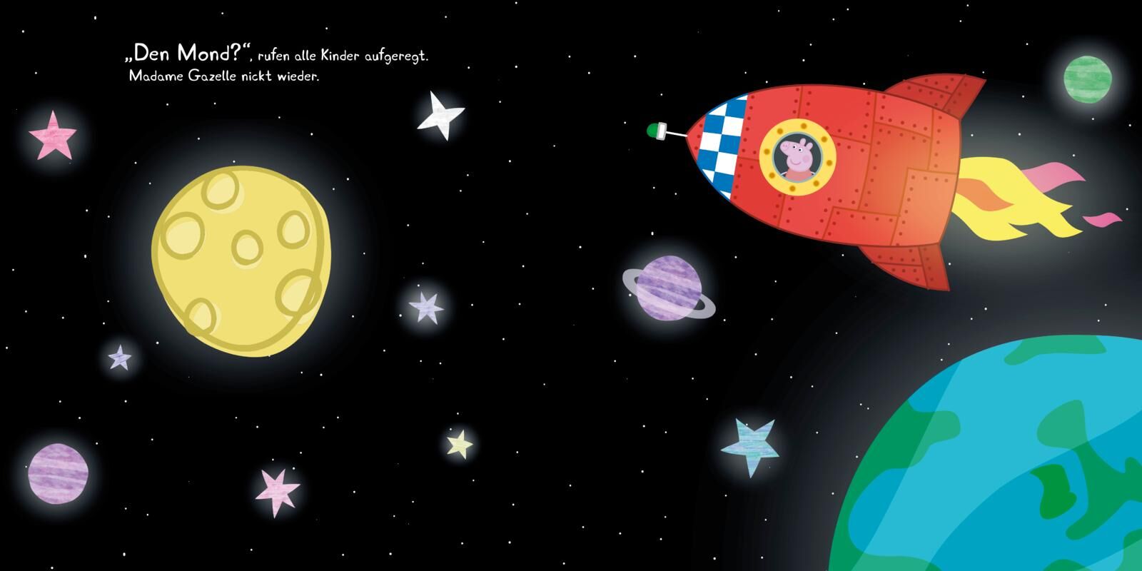 Weltraumabenteuer mit Peppa Pig und Schorsch Heute ist Weltall-Tag in der Spielgruppe. Peppa, Schorsch und ihre Freundinnen machen einen Ausflug ins Raumfahrt-Museum. Dort gibt es so viel zu entdecken am liebsten würden die Kinder zum Mond reisen! Da haben di...