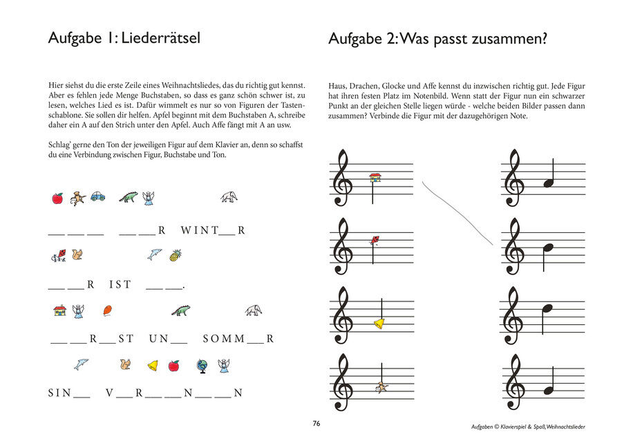 Jedes einzelne Lied in Klavierspiel & Spaß ist liebevoll und individuell illustriert. Das gleiche gilt für im Buch enthaltene Aufgaben zum Notenlernen in Kapitel 3 des Buches Zu Weihnachten gehört Musik Der Weihnachtsband von Klavierspiel & Spaß ist ei...