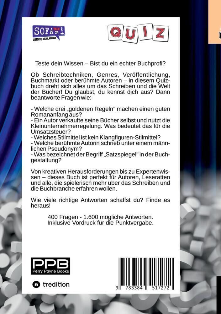 Autorenwissen XXL: Das große Quiz für Schriftsteller & Literaturfans; Das offizielle Buch zum SofaTalk24 - Autorenquiz Wie gut kennst du dich wirklich in der Buchwelt aus? Plotstruktur, Self-Publishing, Schreibstil, berühmte Autoren: Wenn du schreibst oder...
