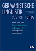 "Persuasionsstile in Europa" ist der Name eines seit 2011 laufenden Projekts, an dem eine Gruppe von Forschern unterschiedlicher Disziplinen (Germanisten, Romanisten, Anglisten, Medienforscher, Computerlinguisten) aus acht europäischen Ländern arbeitet. Im Mit...