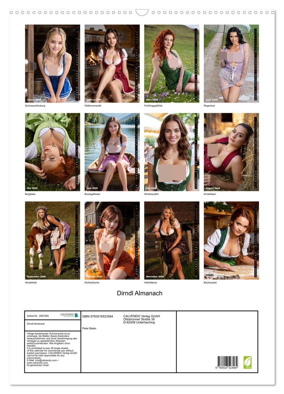 Dirndl Almanach (Wandkalender 2026 DIN A2 hoch), CALVENDO Monatskalender