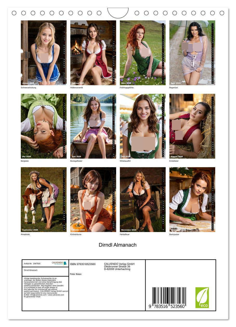 Tauchen Sie ein in eine Welt voller Sinnlichkeit, Tradition und alpiner Eleganz: Der Dirndl Almanach ist ein exklusiver Erotik-Kalender mit zwölf fotorealistischen Darstellungen junger, sinnlicher Frauen in detailreichen Dirndln. Jede Szene spielt mit tiefem D...