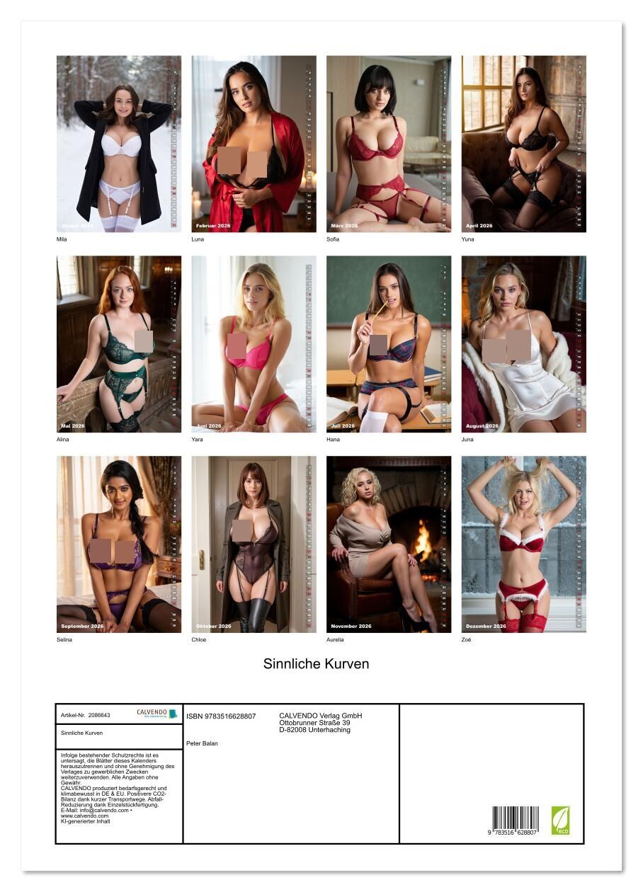 Sinnliche Kurven ist ein exklusiver Erotikkalender, der weibliche Schönheit in all ihrer Fülle zelebriert. Zwölf vollbusige Frauen präsentieren sich in edlen Dessous mal verspielt, mal verführerisch, immer stilvoll in Szene gesetzt. Die Bilder wurden mithilfe ...
