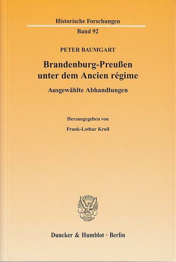 Seit nahezu fünf Jahrzehnten setzt sich Peter Baumgart in Forschung und Lehre mit den Problemen auseinander, vor die Brandenburg-Preußen als geschichtliches Phänomen die Historiker immer wieder stellt. Er widmet sich vorrangig jenen Phasen frühneuzeitlicher En...Seit nahezu fünf Jahrzehnten setzt sich Peter Baumgart in Forschung und Lehre mit den Problemen auseinander, vor die Brandenburg-Preußen als geschichtliches Phänomen die Historiker immer wieder stellt. Er widmet sich vorrangig jenen Phasen frühneuzeitlicher Entwicklung, in denen aus dem Territorialstaat Kurbrandenburg die preußische Monarchie des 18. Jahrhunderts als ostmitteleuropäisches Staatswesen ganz eigener Präsenz erwuchs. Eine repräsentative Auswahl von 30 in diesem Band vereinigten Abhandlungen soll den Prozeß der Formierung dieses primär als Staat zu interpretierenden geschichtlichen Gebildes dokumentieren und zugleich die Kräfte akzentuieren, die den Staatsbildungsprozeß Preußens während des Ancien régime bestimmten. In sechs konzentrischen Themenbereichen nähert sich der Autor diesem Ziel: Nach einer genaueren Periodisierung des Rahmens, innerhalb dessen sich dieses Staatswesen konstituieren konnte (I), charakterisiert er die Dynastie und ihre herausragenden Repräsentanten als Strukturbegründer des preußischen Staates und seines allmählichen Aufstiegs zur deutschen und europäischen Macht (II). Es folgen Beiträge zum Aufbau der Monarchie im 18. Jahrhundert, zur Bedeutung des Ständetums in den Kerngebieten, zur Diplomatie, zum Ausbau des zentralen Verwaltungssystems wie der Armee und zur Rolle des Adels sowie zur Charakterisierung einzelner Minister (III). Ein eigener Themenkreis gilt Untersuchungen zur Annexion und Integration Schlesiens in den Gesamtstaat (IV). Schon frühzeitig beschäftigte sich Peter Baumgart mit der Stellung der jüdischen Minorität im Staat des "aufgeklärten Absolutismus" (V). Zu der von jeher kontroversen Preußenhistoriographie (VI) steuert er neben den Würdigungen dreier Historiker einen zugespitzt formulierten Beitrag zur heftig geführten Absolutismusdiskussion bei.