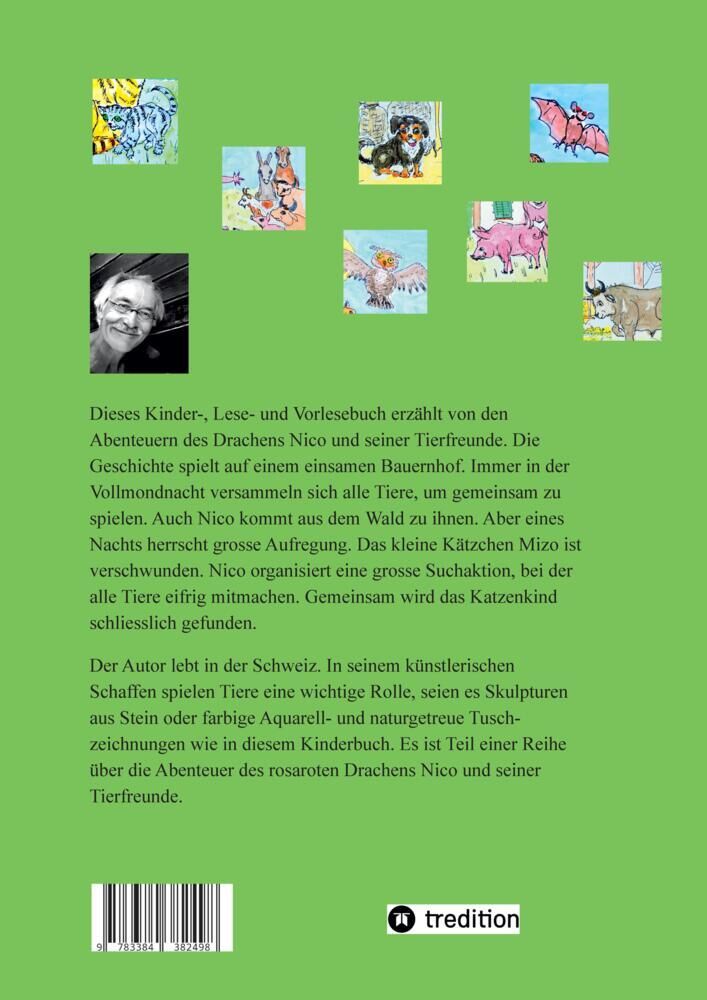 Ein Bilder-, Lese- und Vorlesebuch mit dem rosaroten Drachen Nico und seinen Tierfreunden. In der Vollmondnacht versammeln sich jeweils alle Tiere auf einem Bauernhof um gemeinsam zu spielen. Aber eines Nachts herrscht grosse Aufregung. Das kleine Katzenkind i...