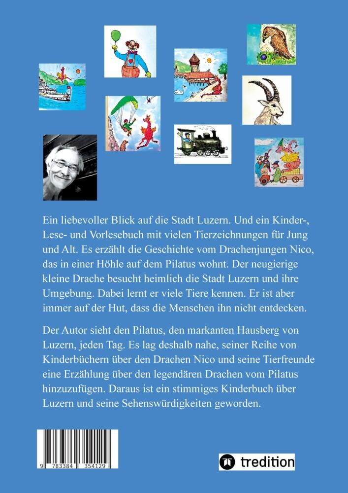 Nico ist ein rosaroter Drachenjunge, der allein in einer Höhle auf dem Pilatus wohnt. Der neugierige kleine Drache lernt fliegen und besucht heimlich die Stadt Luzern und ihre Umgebung. Dabei lernt er die Stadt und ihre Sehenswürdigkeiten und viele Tiere kenne...