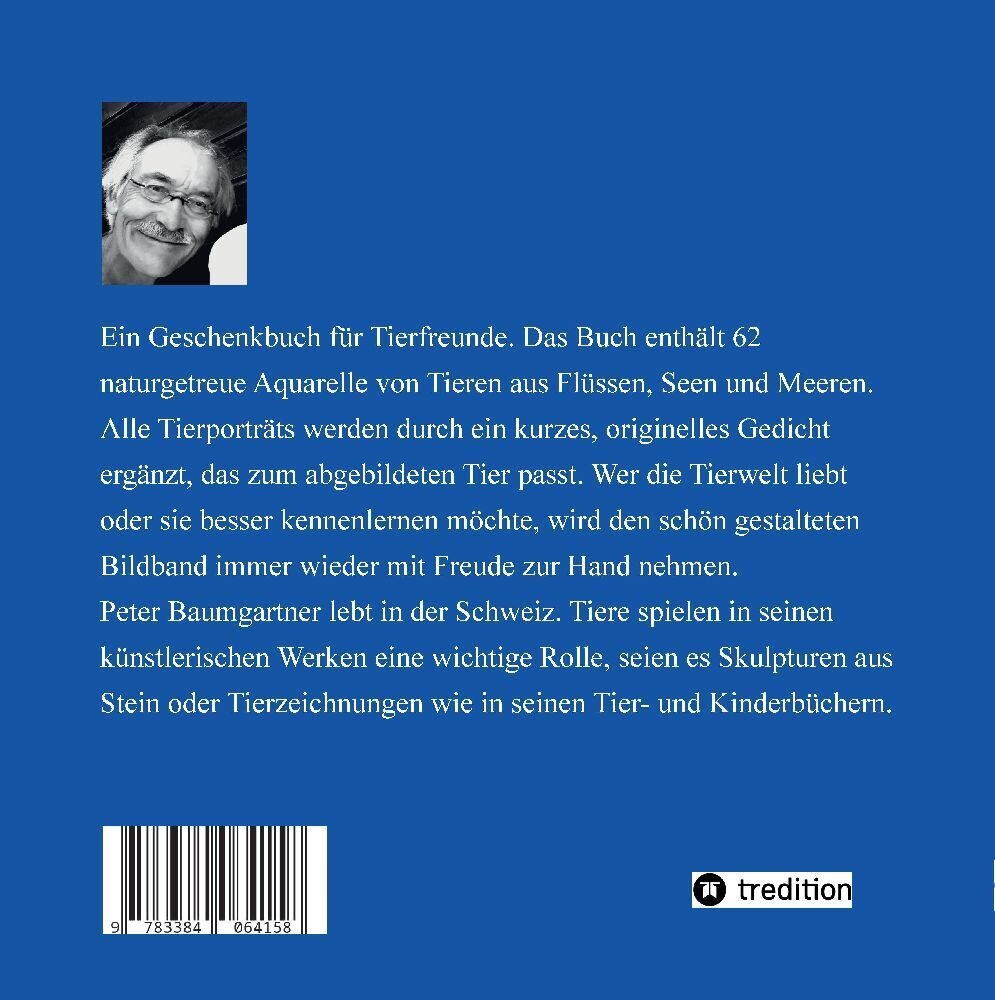 Naturgetreue Aquarelle von ausgewählten Bewohnern von Flüssen, Seen und Meeren. Die 62 Tierzeichnungen werden jeweils durch ein kurzes, originelles Gedicht ergänzt. Autorentext Peter Baumgartner lebt und arbeitet in der Schweiz. In seinem künstlerischen Schaff...