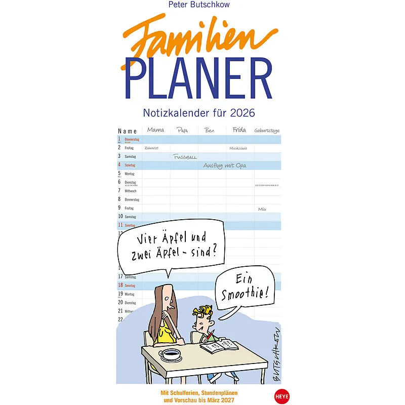 Lachen hilft: Gut gelaunt durch den Alltag mit dem Butschkow Familienkalender 2026 - Für die tägliche Dosis Humor: Praktischer Monats-Planer mit Cartoons von Peter Butschkow über vorlaute Rotznasen, pubertäre Teenager und Eltern am Rande des Wahnsinns - Orga...