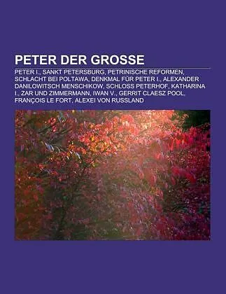 Quelle: Wikipedia. Seiten: 44. Kapitel: Peter I., Sankt Petersburg, Petrinische Reformen, Schlacht bei Poltawa, Denkmal für Peter I., Alexander Danilowitsch Menschikow, Schloss Peterhof, Katharina I., Zar und Zimmermann, Iwan V., Gerrit Claesz Pool, François L...