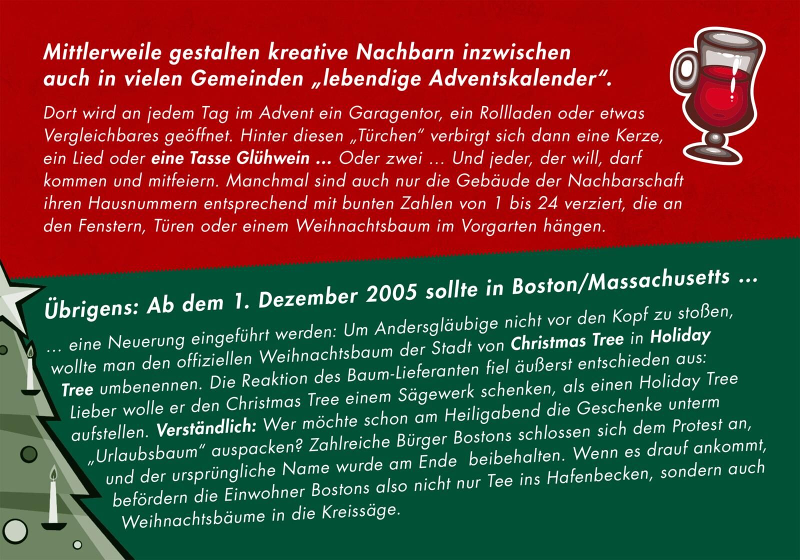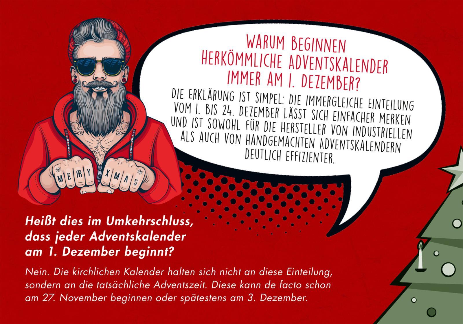 Endlich mitreden der Adventskalender für echte Kerle! Warum feiern wir eigentlich nur wenige Tage vor Weihnachten Maria Empfängnis, und was zum Geier hat die Barbara mit Weihnachten zu tun? Wann ist die beste Zeit, um Geschenke zu kaufen und was um Himmels Wi...